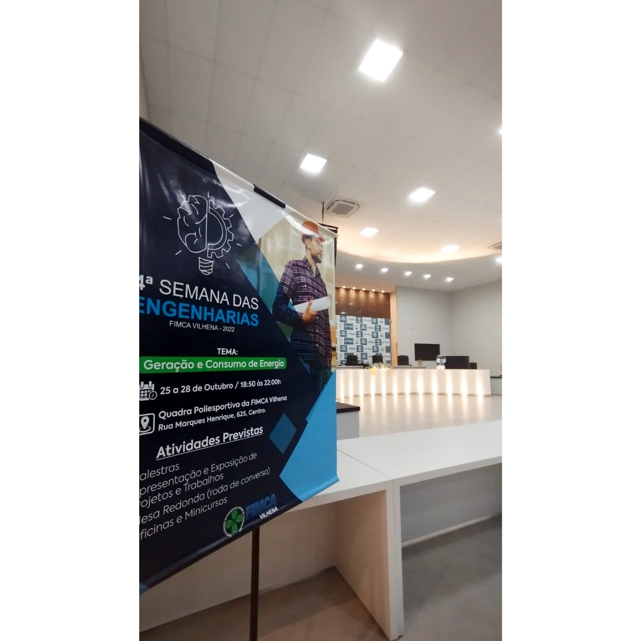 A 4º Semana das Engenharias da FIMCA Vilhena aconteceu entre os dias 25 e 28 de Outubro com o tema Geração e Consumo de Energia. O evento contou com participação de alunos, professores, coordenadores, representantes do município, profissionais da área de engenharia que realizaram palestras, oficinas, minicursos, e também apresentação de trabalhos e projetos que foram desenvolvidos ao longo deste ano pelos acadêmicos dos cursos de Engenharias da FIMCA Vilhena. O evento foi aberto ao público.
