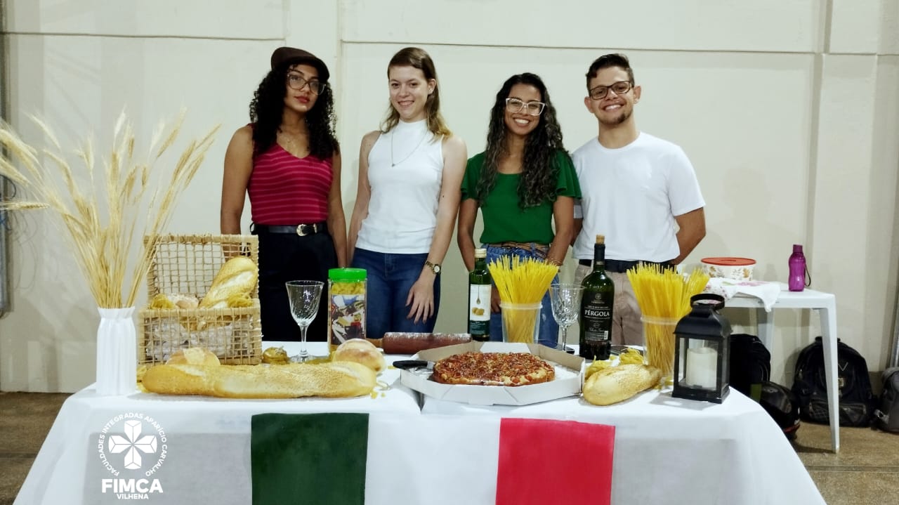 O grupo do México, Itália e Japão também trouxeram no cardápio deliciosas comidas típicas, como a tradicional Guacamole iguaria típica da culinária do México, feito à base de abacate. O Sunomono, prático típico Japonês, também fez muito sucesso. Tradicionalmente, o prato leva pepino japonês, vinagre de arroz, açúcar, sal e sementes de gergelim. A Itália trouxe variados tipos de massas, como a Focaccia. É um delicioso pão feito com bastante azeite, sendo achatada, quase como uma pizza, mas tem um miolo bem leve e aerado, um prato versátil, podendo ser consumido desde o café da manhã, almoço e jantar. A 1º Exposição Cultural foi um passeio entre Países, sem precisar pegar o avião. Os acadêmicos trouxeram história, cultura, costumes, culinária, além de muito conhecimento.