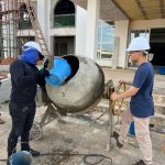 Durante a aula, os acadêmicos acompanharam todo o processo de produção do concreto celular, um tipo de concreto leve criado pela incorporação de espuma à mistura tradicional. Esse procedimento reduz a densidade e a resistência do material, tornando-o adequado para aplicações específicas na construção civil, como enchimentos, regularizações e sistemas que demandam menor peso estrutural.