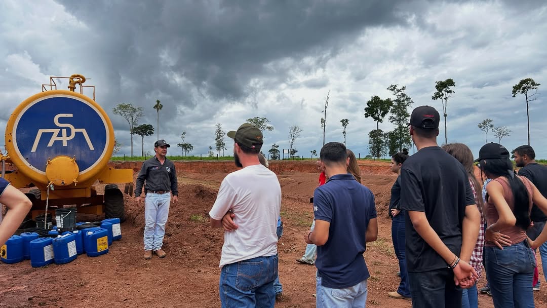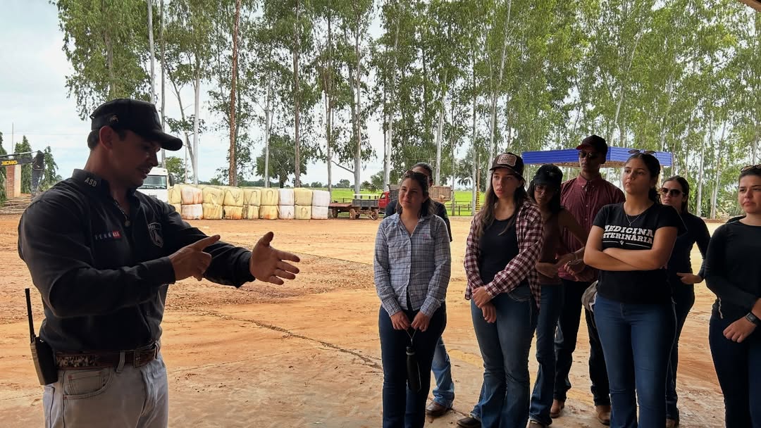 A atividade foi acompanhada pelo docente e médico veterinário Giancarlo Dalla Costa, proporcionando aos acadêmicos uma imersão na realidade do campo e nos desafios enfrentados no dia a dia do agronegócio.