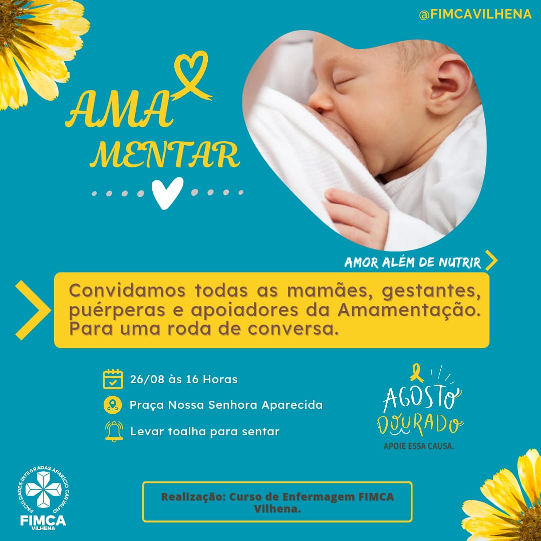 No último sábado (26), acadêmicos do 10º período de Enfermagem da FIMCA Vilhena, realizaram um movimento em prol do Agosto Dourado. O evento foi realizado na praça Nossa Senhora Aparecida e foi aberta ao público. Em especial mamães, gestantes, puérperas e apoiadores da amamentação. O objetivo da ação é abordar aspectos relacionados ao tema, além de proporcionar um encontro lindo, emocionante e descontraído.