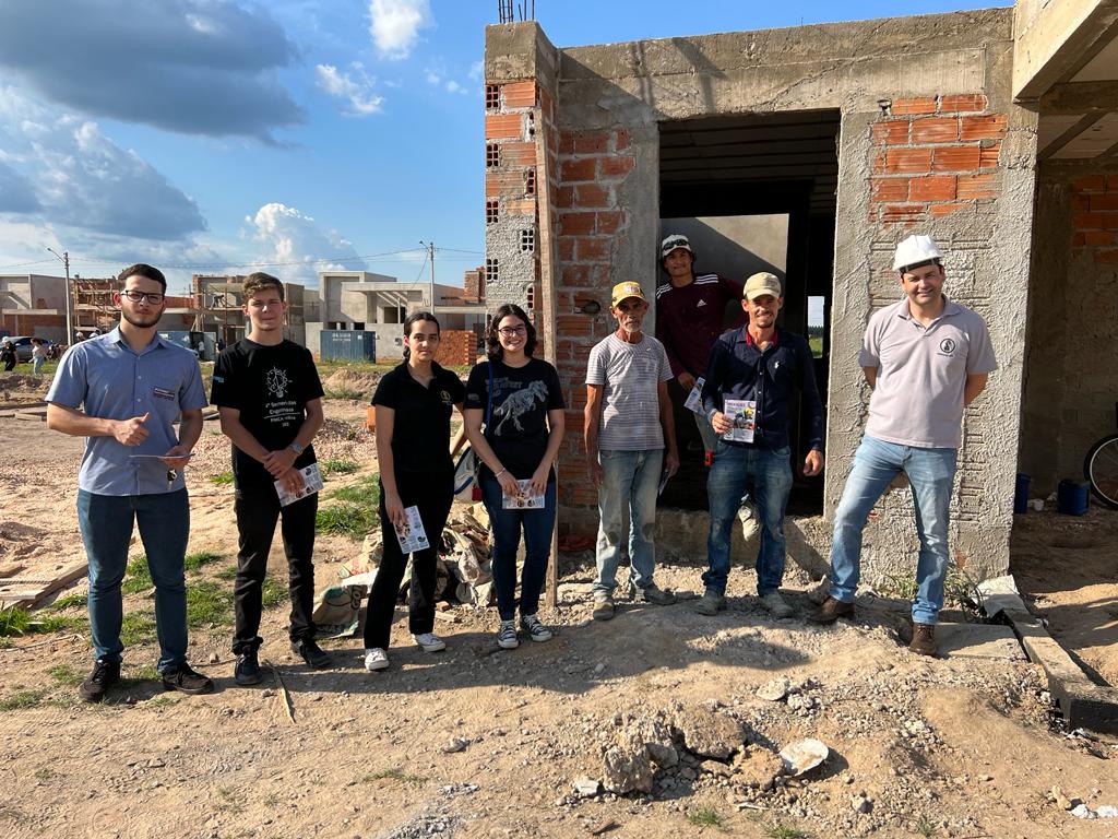 Alunos da Engenharia Civil da FIMCA Vilhena, engajados em um projeto de Extensão, tiveram a oportunidade de levar o conhecimento acadêmico diretamente aos canteiros de obra. Os Acadêmicos entregaram panfletos informativos sobre orientações técnicas em obras, focando em: Impermeabilização nas fundações, Junção de alvenaria em pilar, verga e contra verga.
