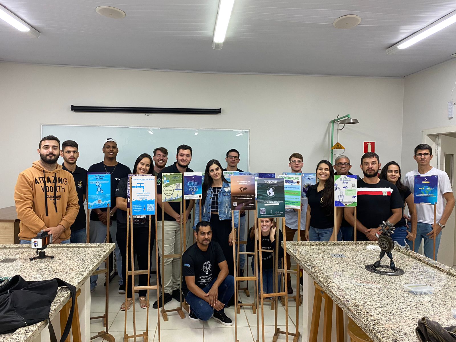 Pensando na data e discutindo sobre o tema relacionado a Campanha de 2023 da (ONU) para o dia Mundial da Água, alunos do 1º, 3° e 7° períodos de Engenharia Civil da FIMCA Vilhena, juntamente com a professora Drª Thainara Quadros, profissional Engenheira Ambiental, realizaram uma ação de conscientização e respeito ao uso racional da água. Foram confeccionadas placas com conteúdo explicativo e de alerta sobre o uso e gestão deste importante recurso natural. As placas foram fixadas em suportes feitos com madeira reaproveitada de obras, os quais foram alocados em pontos estratégicos do campus, nos quais há maior consumo de água, como banheiros e bebedouros. Todas os informativos são compostos por QR CODE que dá acesso a mais conteúdos sobre o tema abordado.