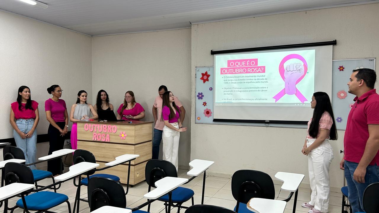 No dia 26 de outubro, os alunos de Medicina da FIMCA realizaram uma palestra informativa sobre os cuidados do Outubro Rosa, voltada especialmente para as colaboradoras da instituição. Esta iniciativa, que contou com a colaboração do curso de Psicologia, teve como objetivo promover a conscientização e a prevenção, além de reforçar a importância do autocuidado com a saúde da mulher.