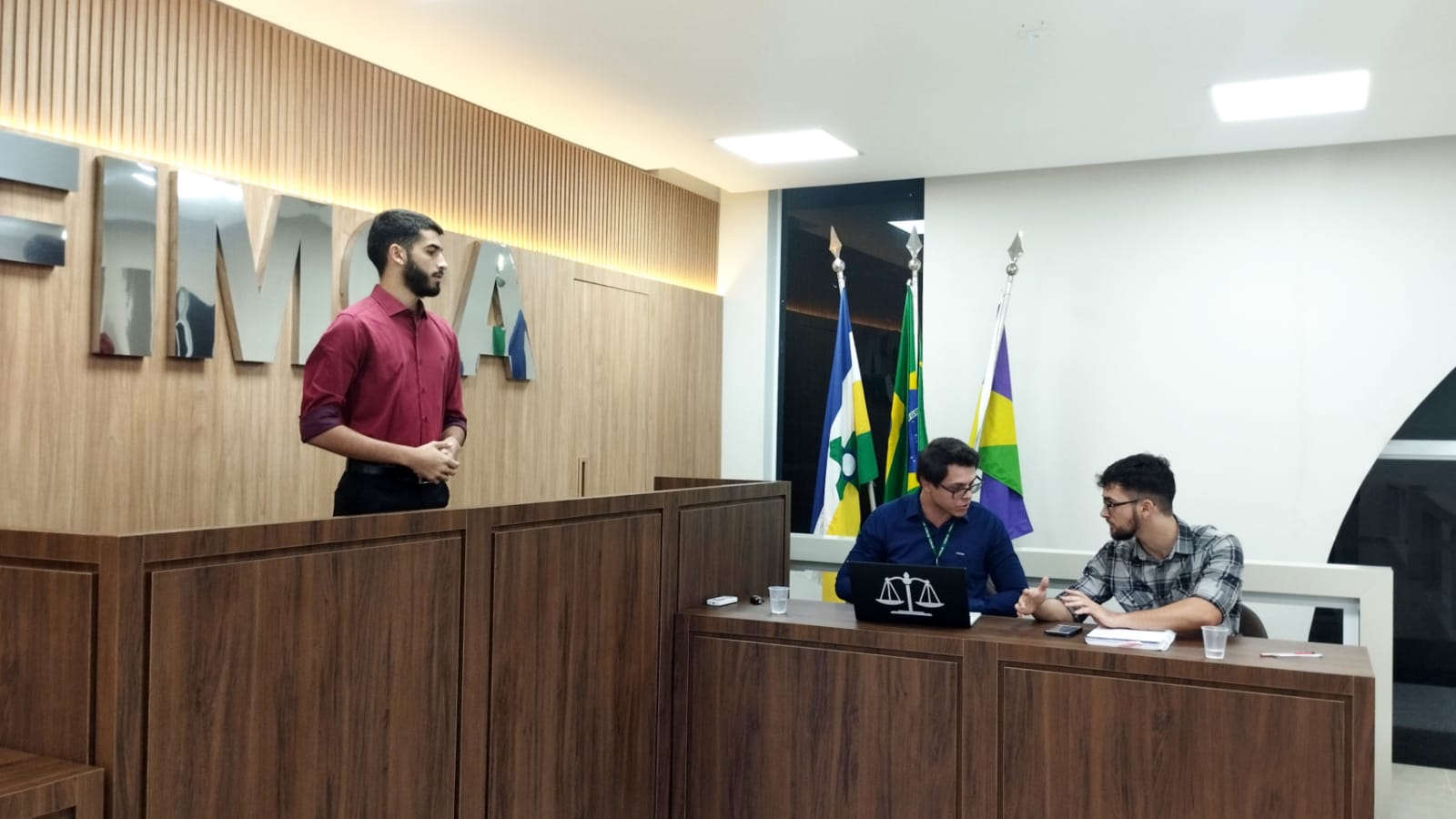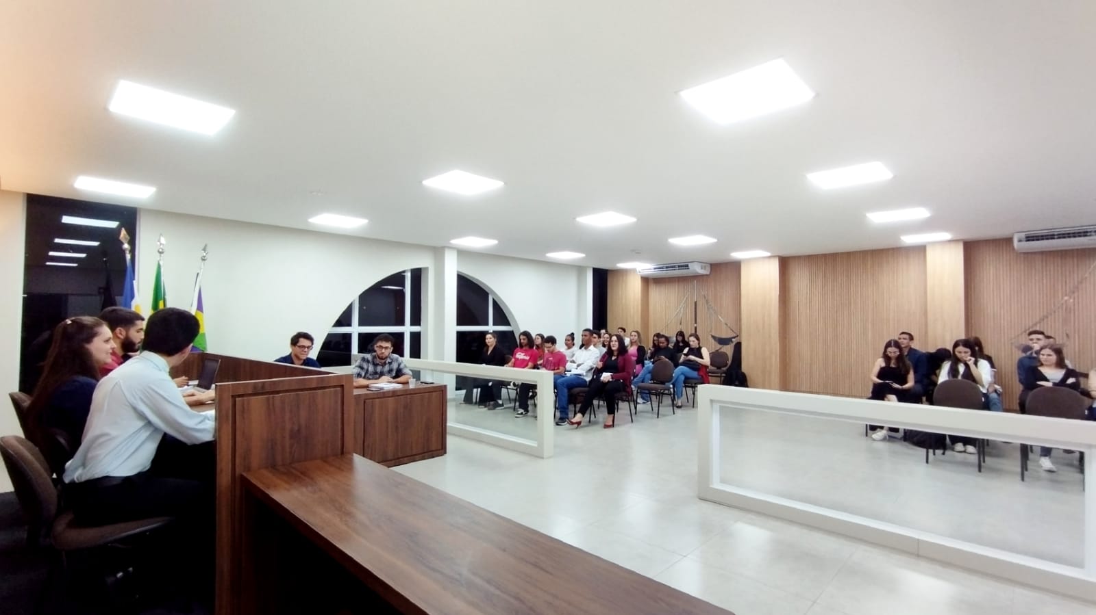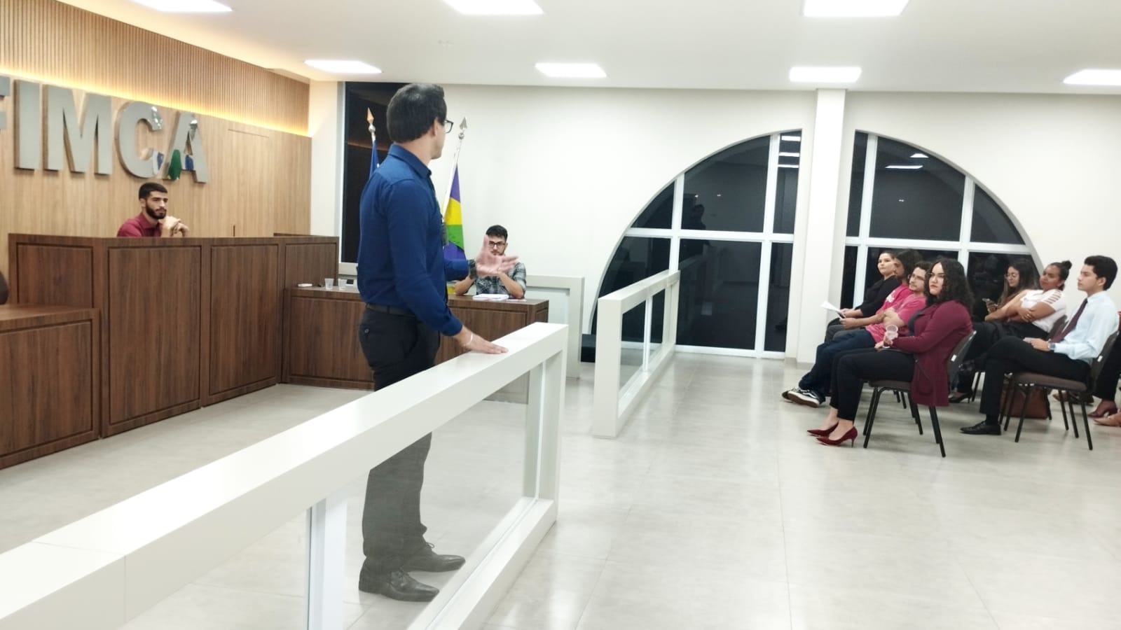 A turma do 4º período do Curso de Direito da FIMCA realizou, nessa última quarta-feira, dia 15, um simulado da sessão ordinária da Câmara de Vereadores, no Plenário de Júri da FIMCA Vilhena. Ministrada pelo professor Günther Schulz para a disciplina de Direito Constitucional II, a atividade tinha como objetivo ensinar aos acadêmicos noções sobre o processo legislativo e controle de constitucionalidade.