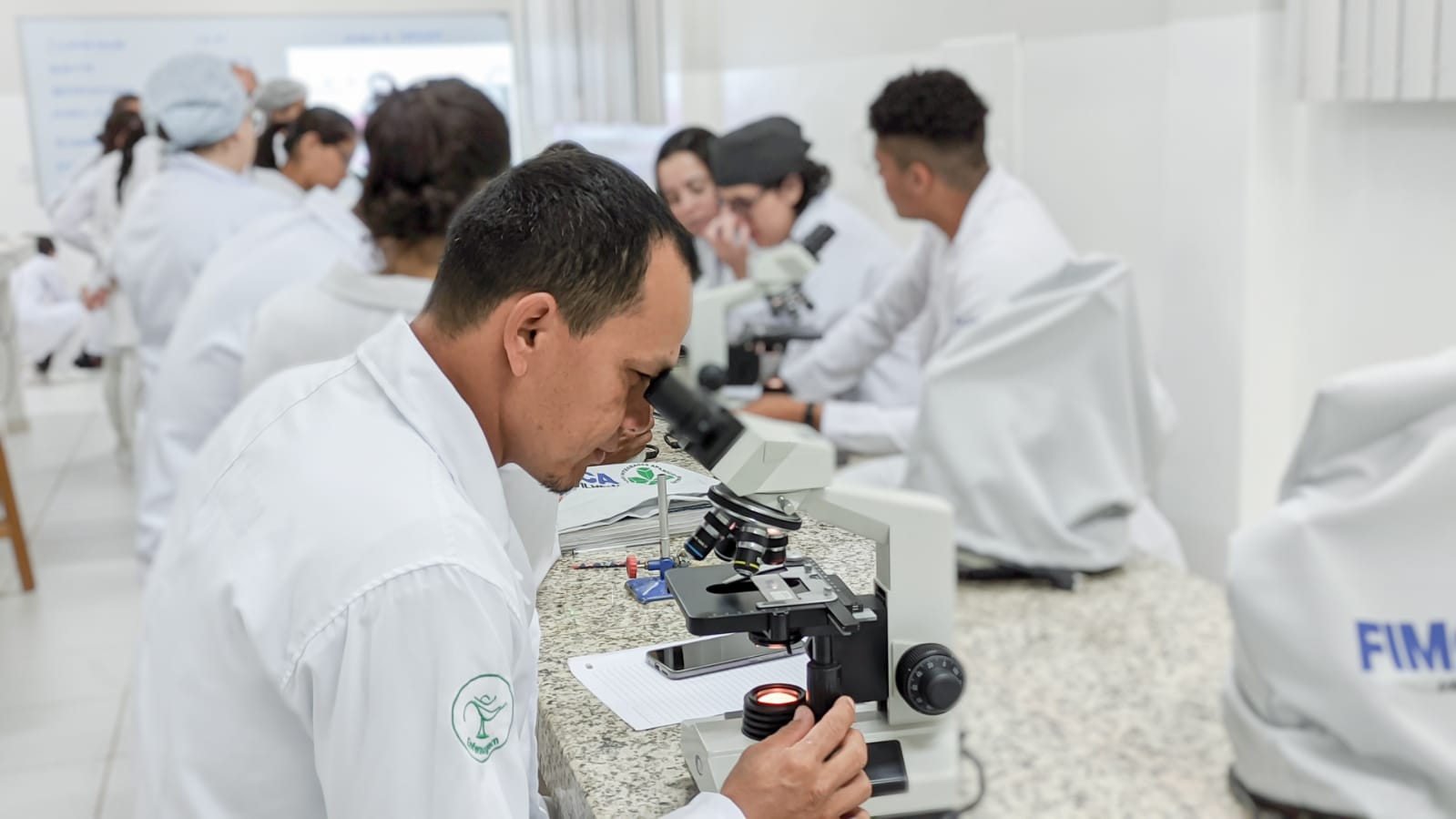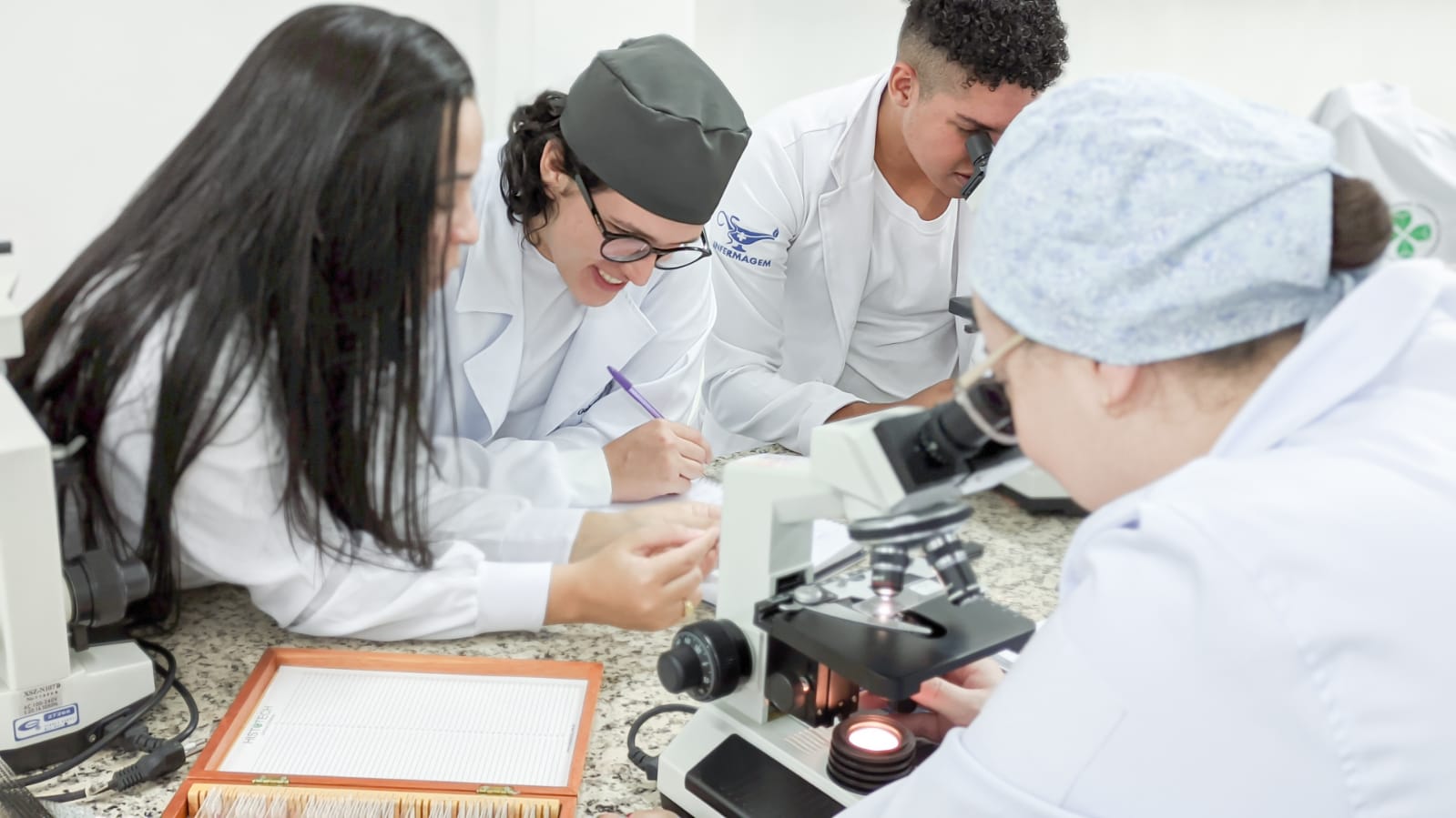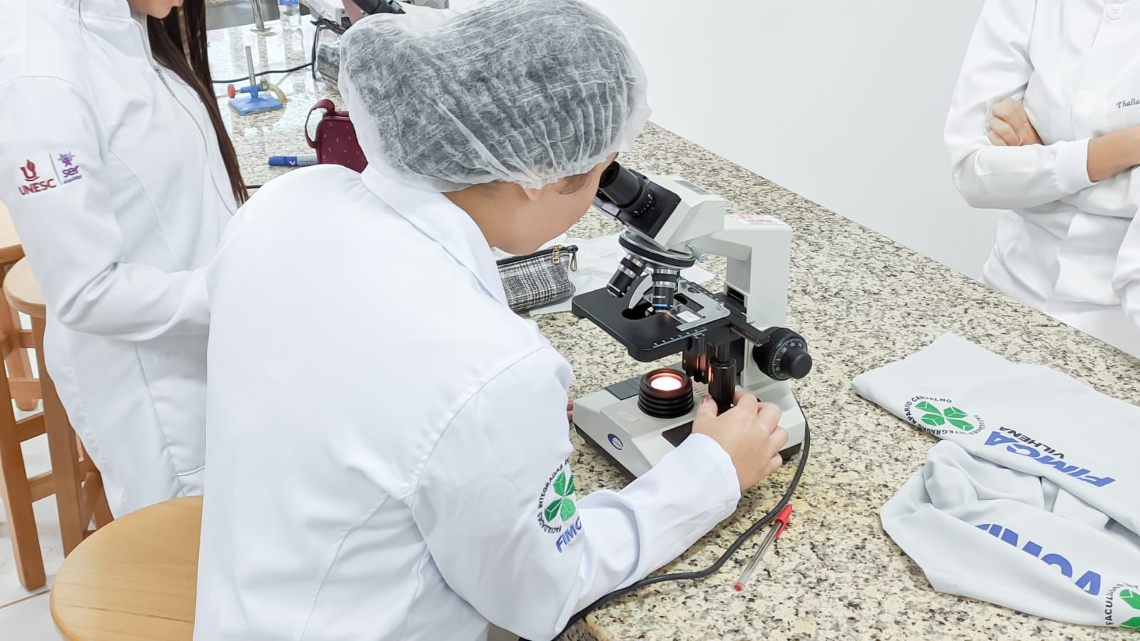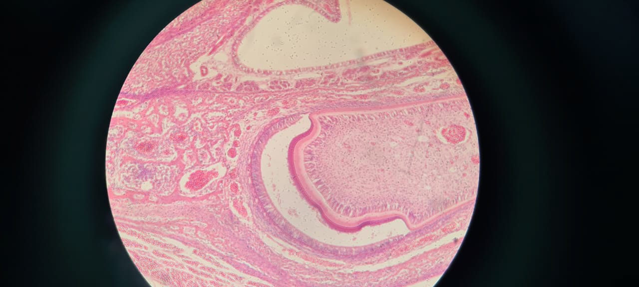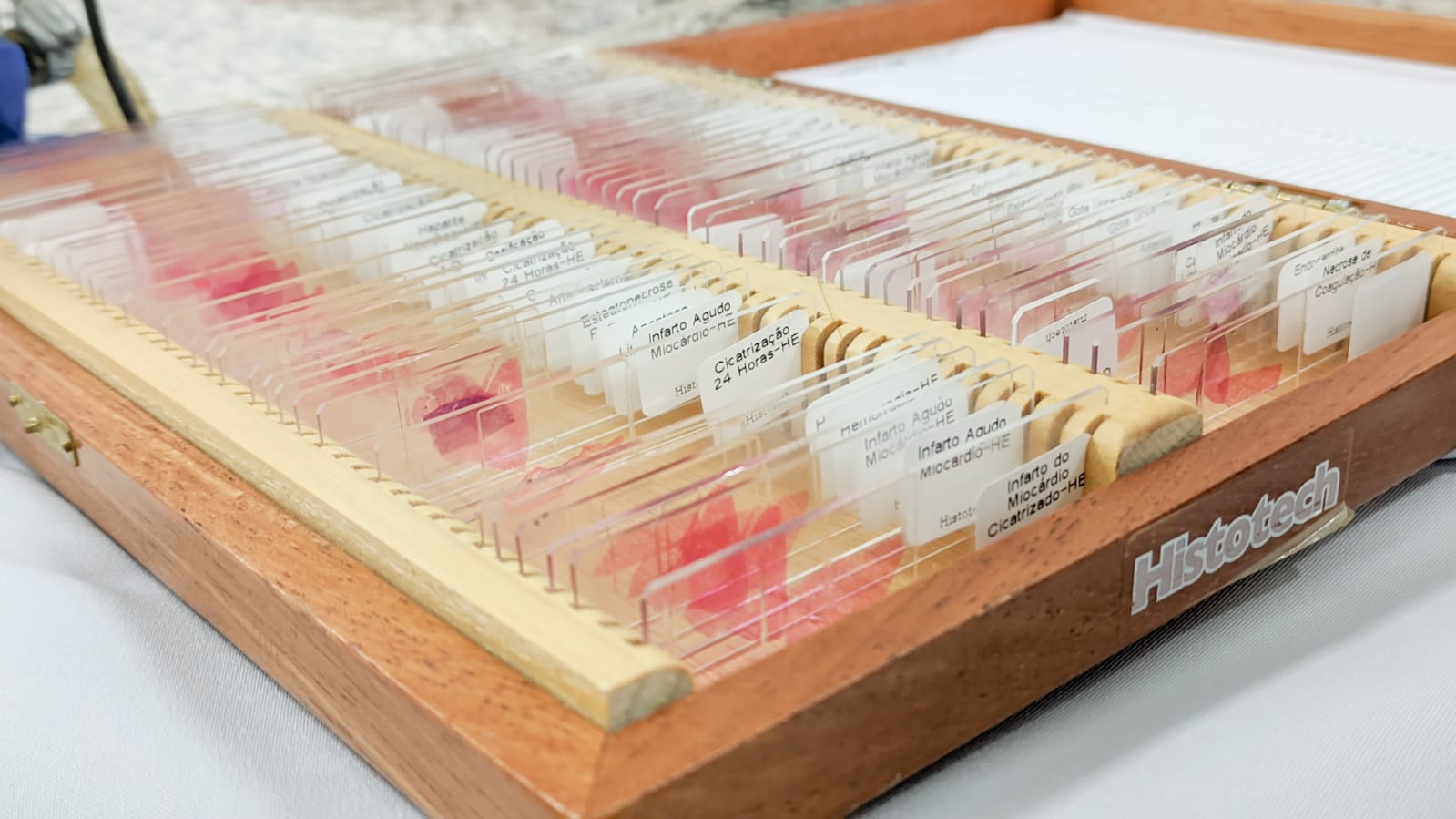 Os acadêmicos do 3º período de Enfermagem analisaram no microscópio tecidos pós traumatizados por patologias como hepatite, infarto agudo do miocárdio, aterosclerose, necrose por coagulação, e outros e observaram fisiologicamente como nosso corpo reage após estes processos patológicos.