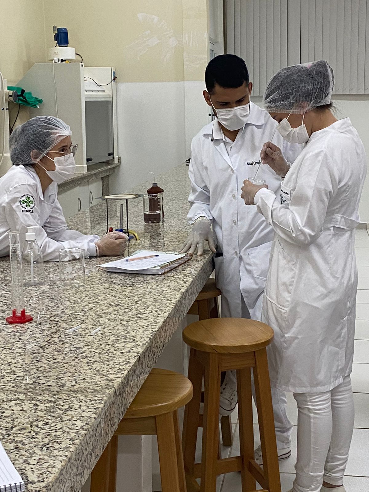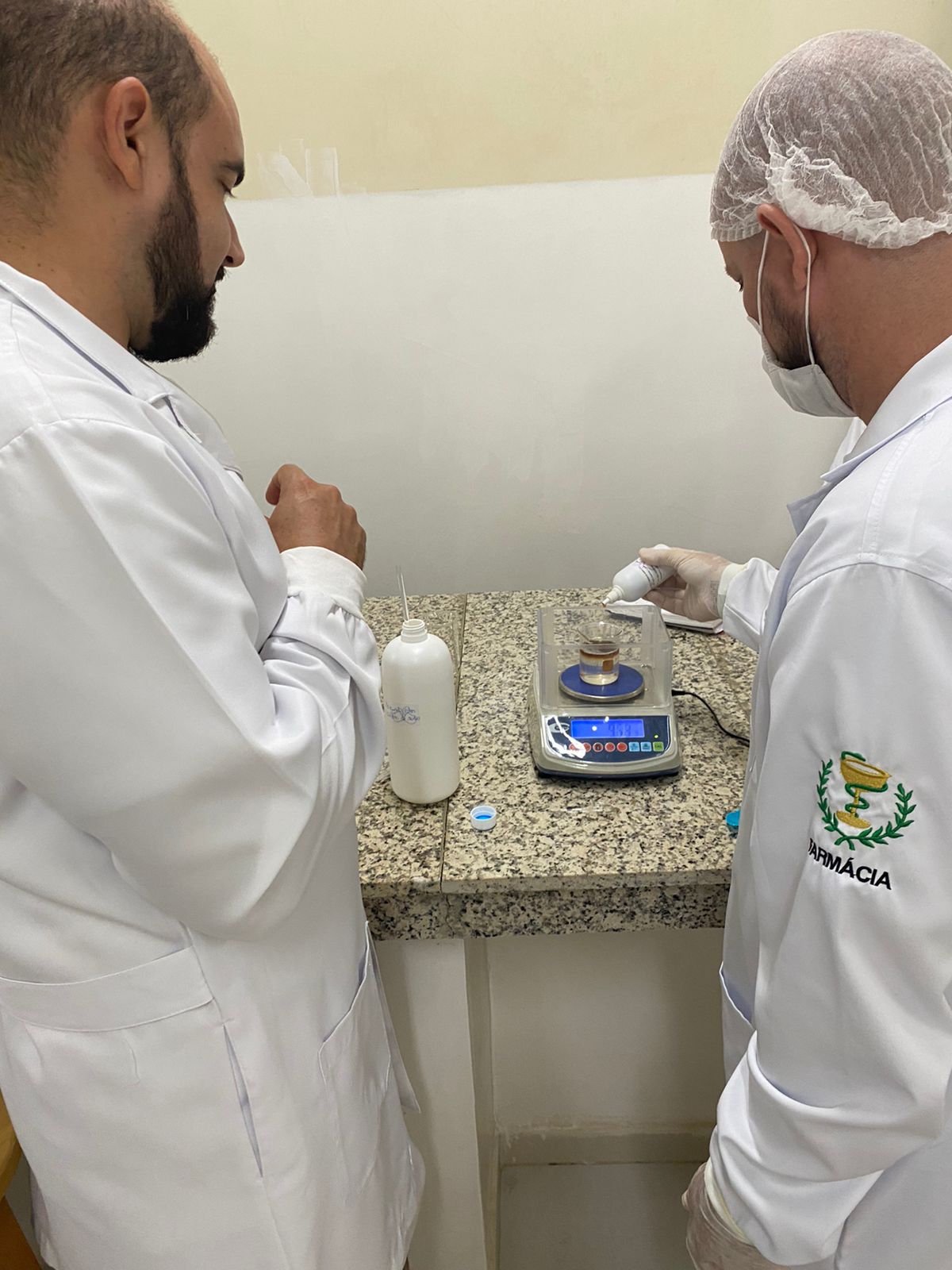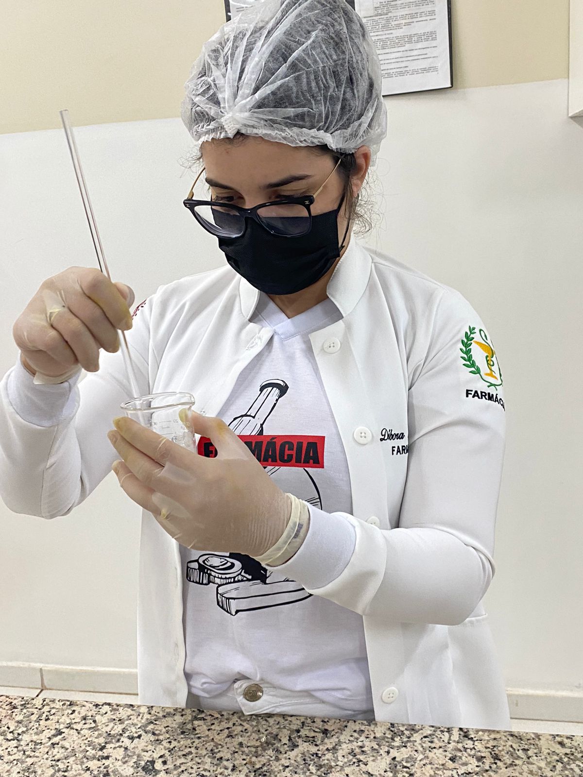 Os acadêmicos do 5 período de Farmácia participaram ontem (25), da produção de shampoo com o Professor Felipe Vitalli, na aula prática de Farmacotécnica.
