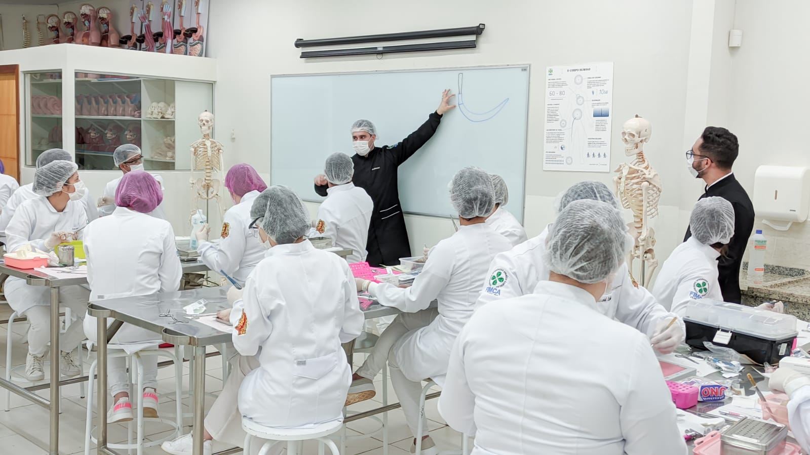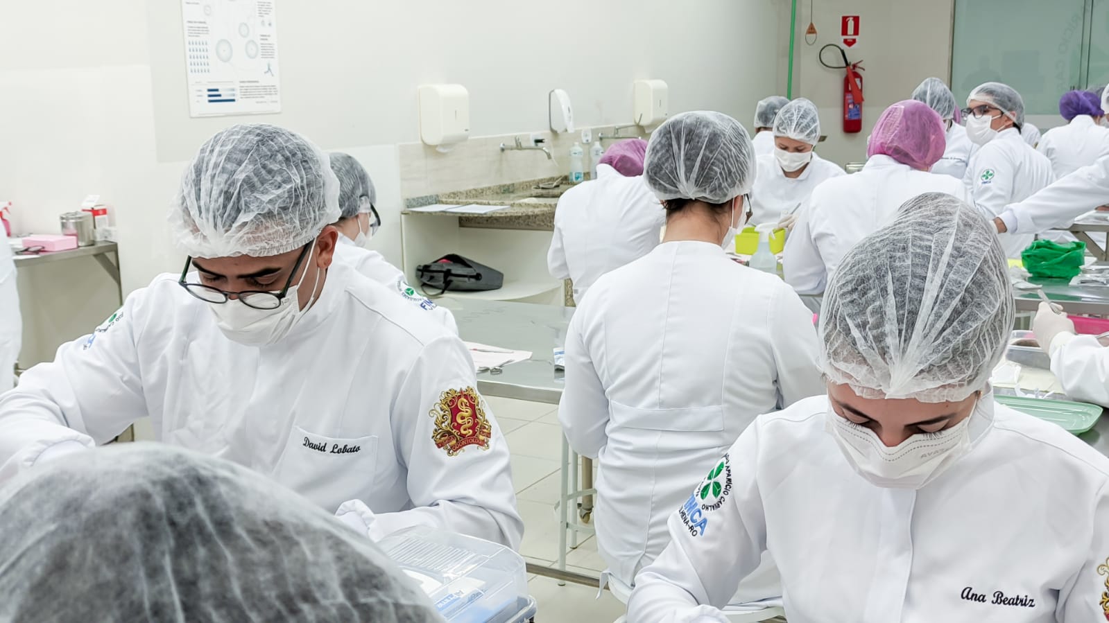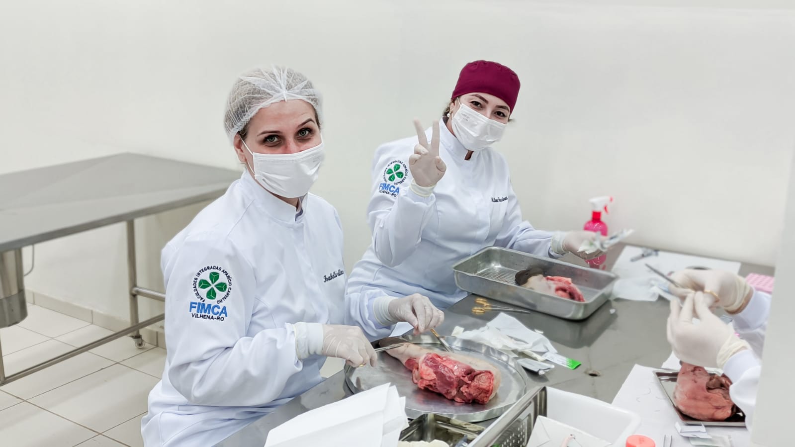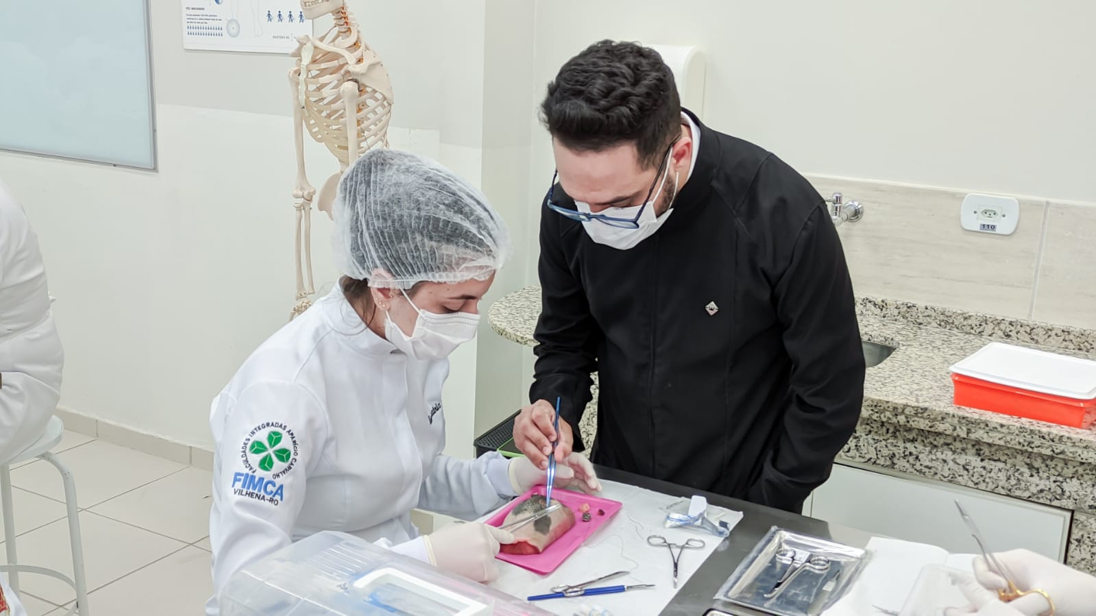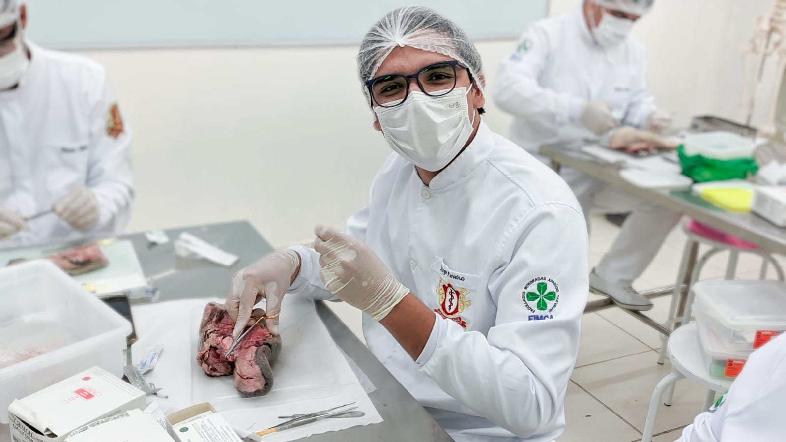 Os acadêmicos do 5º período do curso de Odontologia realizaram a prática de suturas em língua bovina. Esta peça animal é bem semelhante à textura dos tecidos moles da boca humana, como bochechas, lábios, língua e gengivas onde podem ser realizados alguns procedimentos cirúrgicos necessitando do auxílio dos pontos para cicatrização.