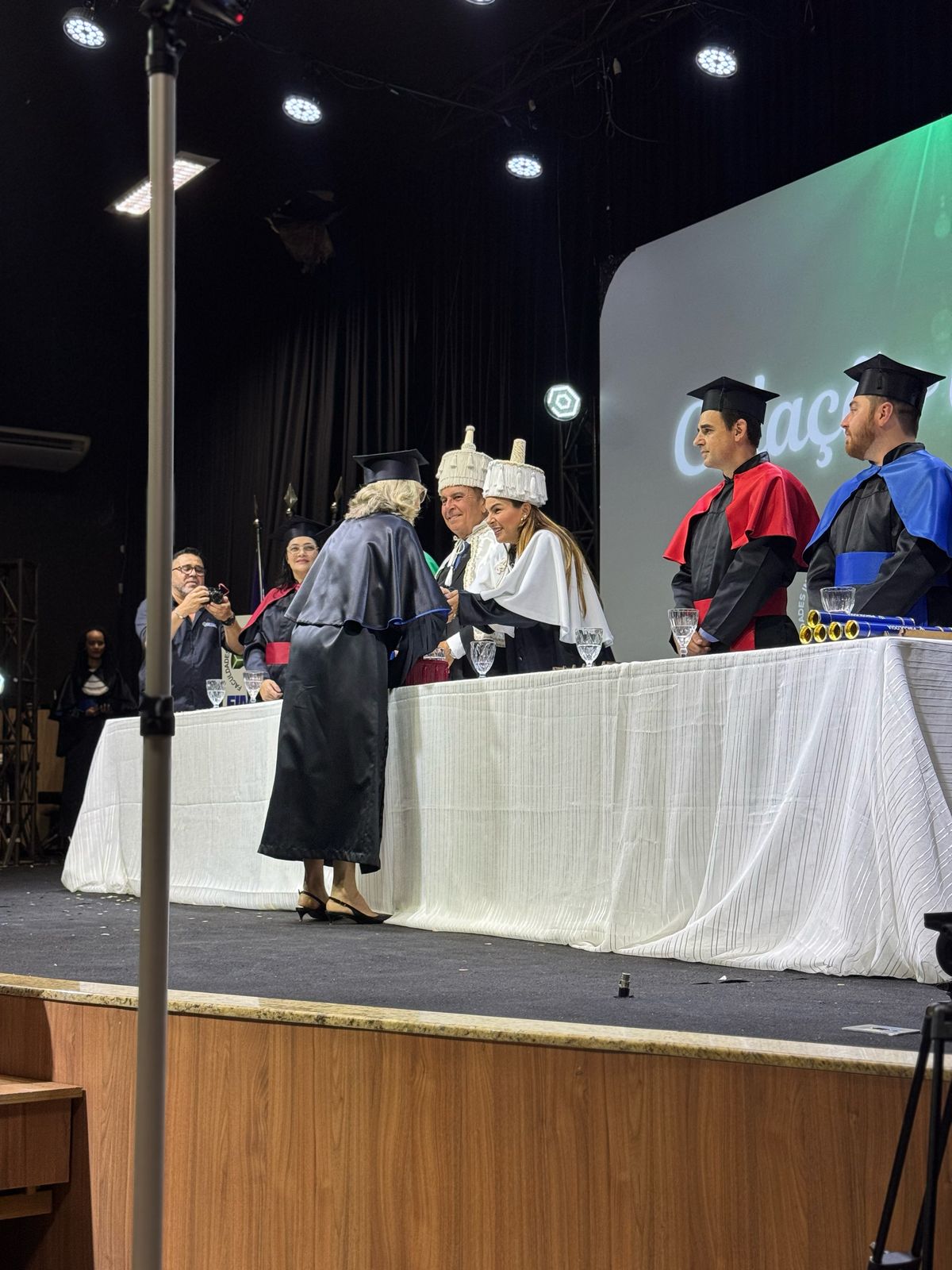 “Hoje é uma noite de alegria e emoção. Poder vir até Vilhena e colaborar com o ensino superior é motivo para comemorar. Através da confiança que vocês depositaram em nossa instituição durante todo o ensino, hoje vocês recebem o tão sonhado diploma”, ressaltou a Dra. Mariana.