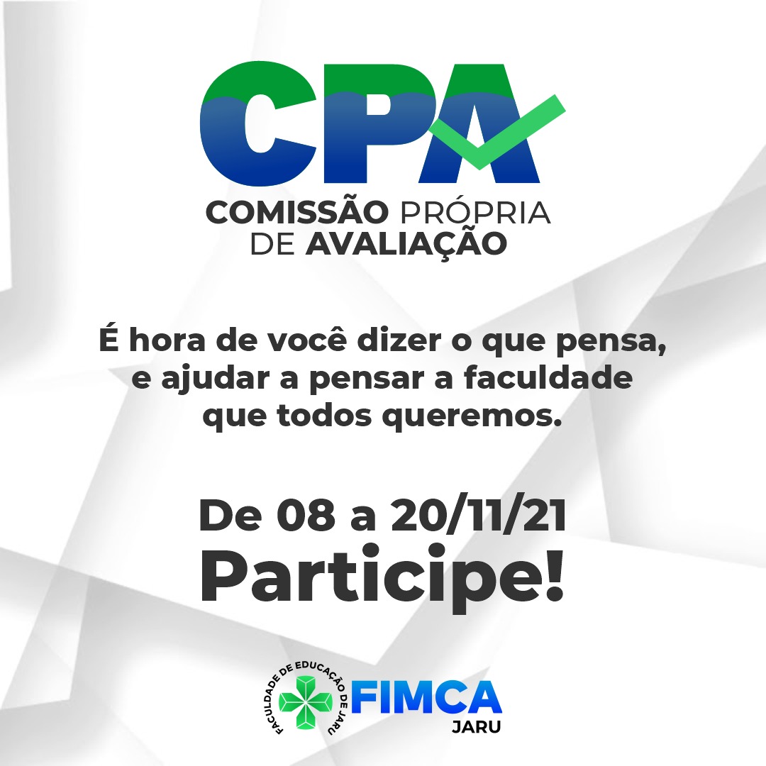 Como Instituição de Ensino Superior buscamos sempre oferecer o que há de melhor ao público que atendemos, acadêmicos, população e colaboradores, por esse motivo nós da FIMCA Vilhena de Rondônia temos o CPA – Comissão Própria de Avaliação, através desse canal buscamos a melhoria da nossa instituição. Participe e nos ajude a continuar proporcionando um atendimento de qualidade com eficiência e eficácia.