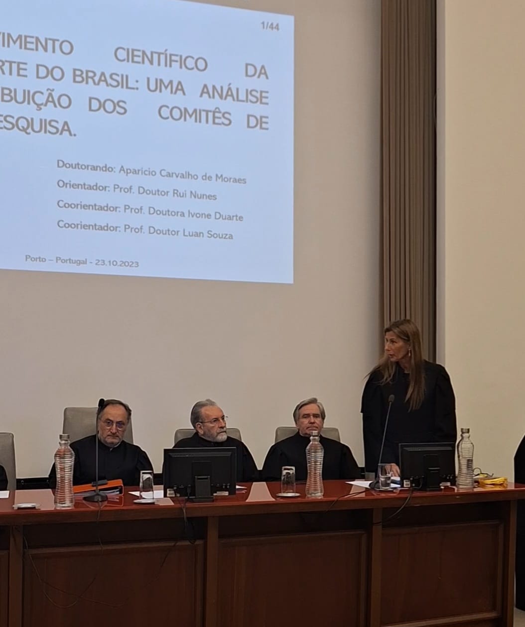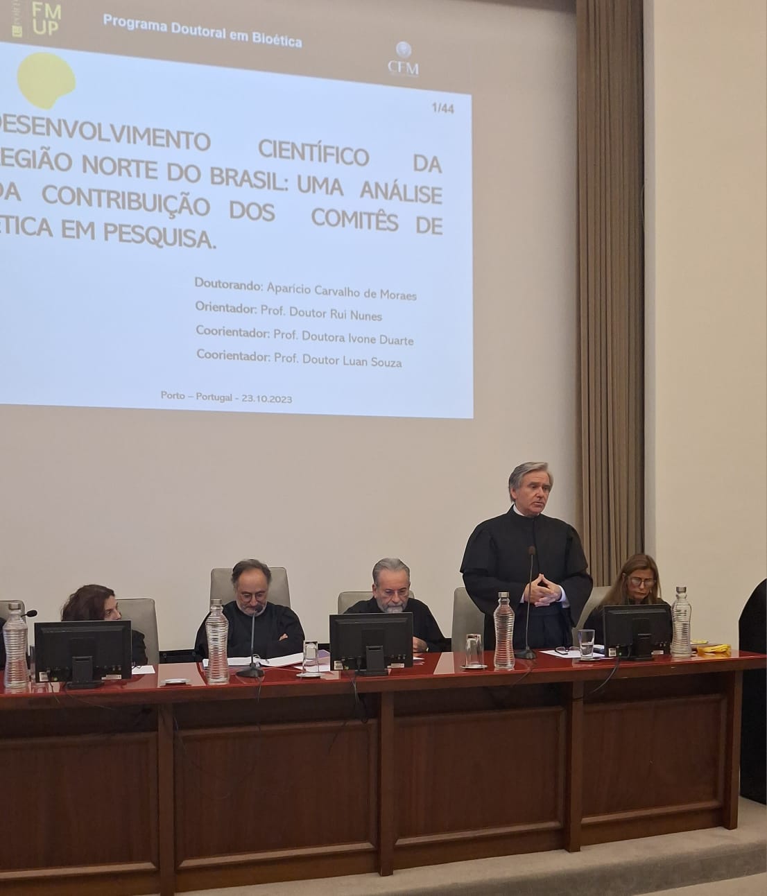 A defesa da tese foi um evento de destaque na comunidade acadêmica da Faculdade de Medicina da Universidade do Porto e contou com a participação de um seleto júri com experiência na área de pesquisa em Bioética. O júri, presidido pelo Professor Doutor Manuel Jesus Falcão Pestana Vasconcelos, da Faculdade de Medicina da Universidade do Porto (Portugal), e composto pela Doutora Eva Dias Costa, da Universidade Portucalense Infante D. Henrique (Portugal), pela Doutora Laine Moraes Dias, do Hospital Universitário João de Barros Barreto (Brasil), pela Doutora Liliana Fernanda da Conceição Teixeira, da Escola Superior de Educação do Instituto Politécnico de Leiria (Portugal), pelo Doutor José Hiran Gallo, Presidente do Conselho Federal de Medicina (Brasil), e pela professora catedrática Doutora Guilhermina Rego, da Faculdade de Medicina da Universidade do Porto (Portugal), e ainda contou com a participação do orientador professor catedrático Doutor Rui Nunes, também da Faculdade de Medicina da Universidade do Porto.