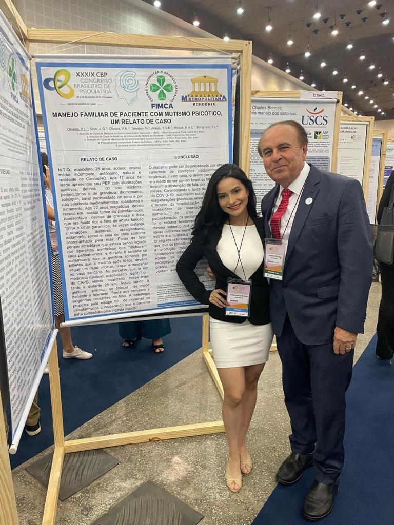 O Dr. Aparício Carvalho, Reitor da FIMCA e Presidente do Núcleo de Psiquiatria de Rondônia – NPR, foi convidado pela comissão organizadora e participou como Coordenador do tema principal: COVID-19 & Psiquiatria, o que as pesquisas recentes mostram? Ainda esteve na coordenação na área temática “Dependência” com o tema: MR30 – O que podemos aprender com a vida dos famosos que adquiriram algum transtorno por uso de substâncias (Tus)?