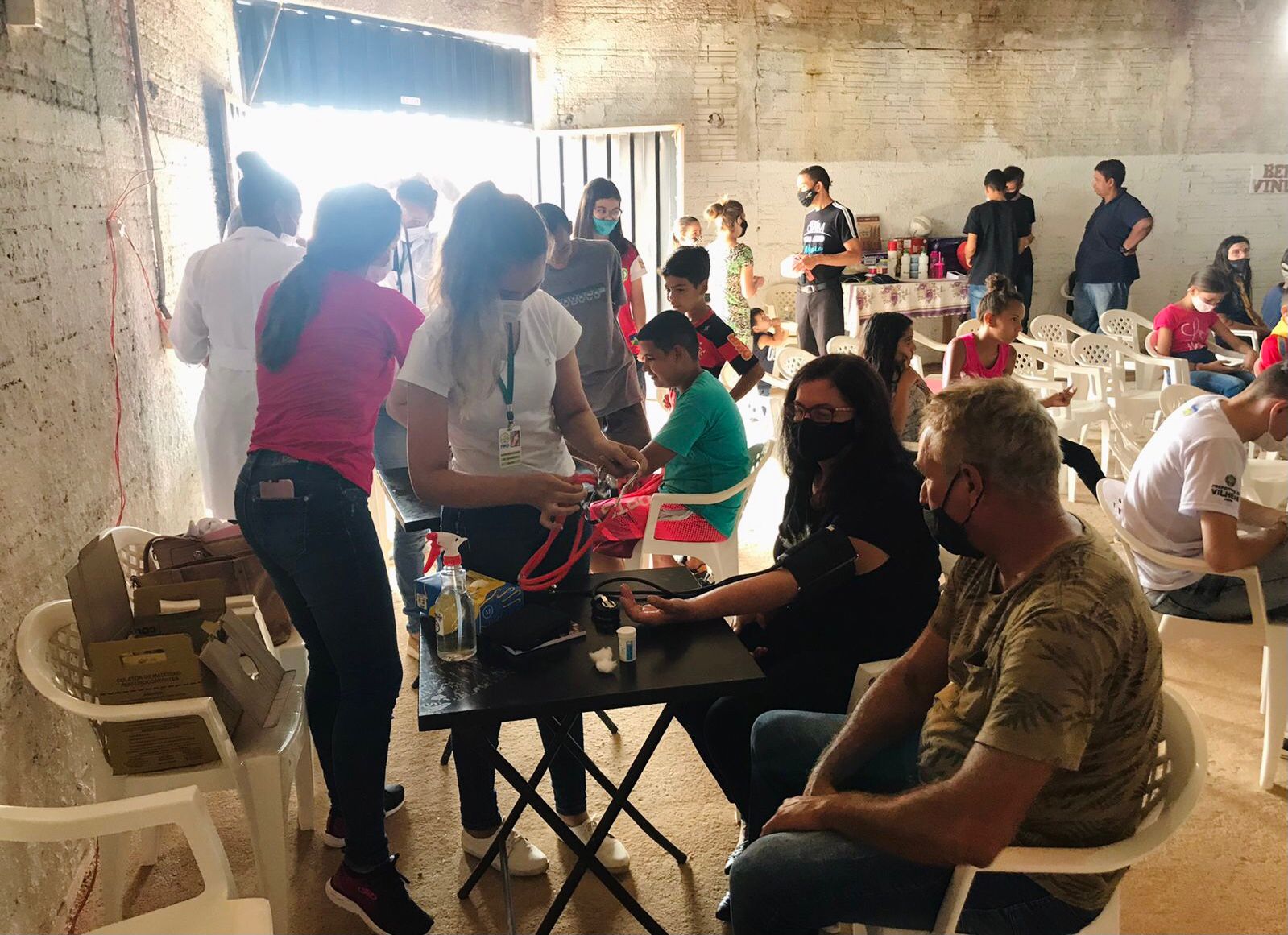 Estagiários do Curso de Enfermagem participam de feira da saúde no bairro Assossete em Vilhena. Ação social foi organizada pela Igreja Adventista para atender a população da comunidade.