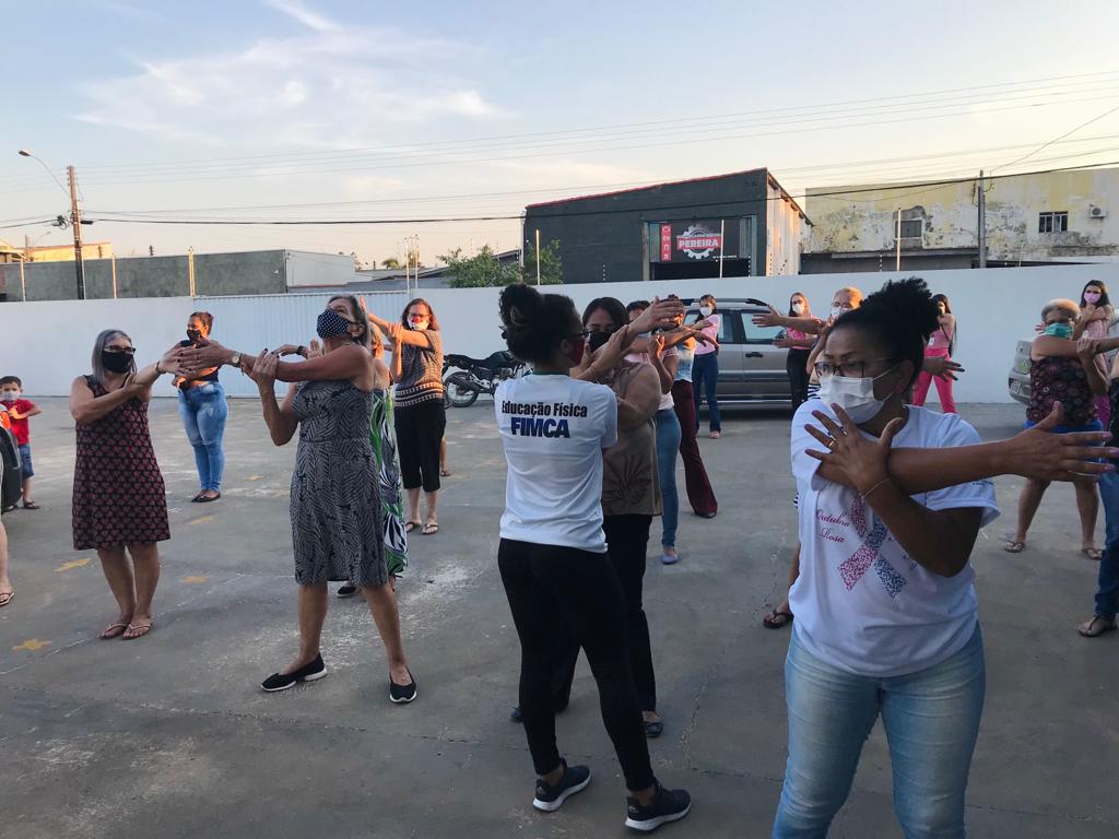 O mês é dedicado à prevenção dos cânceres de mama e colo do útero. A acadêmica Geyci Kelly, que cursa o 8 Período de Educação Física, realizou orientações sobre a importância da atividade física para saúde e bem-estar, inclusive na prevenção de doenças como o câncer. Em seguida realizou atividade de ginástica com as pacientes presentes no evento.