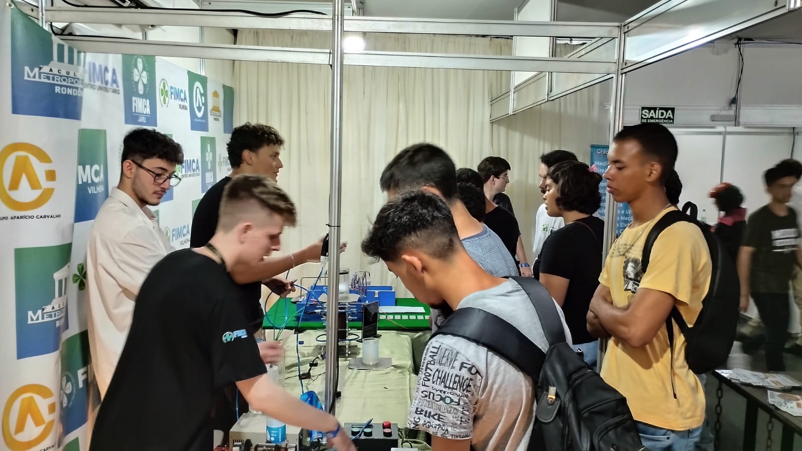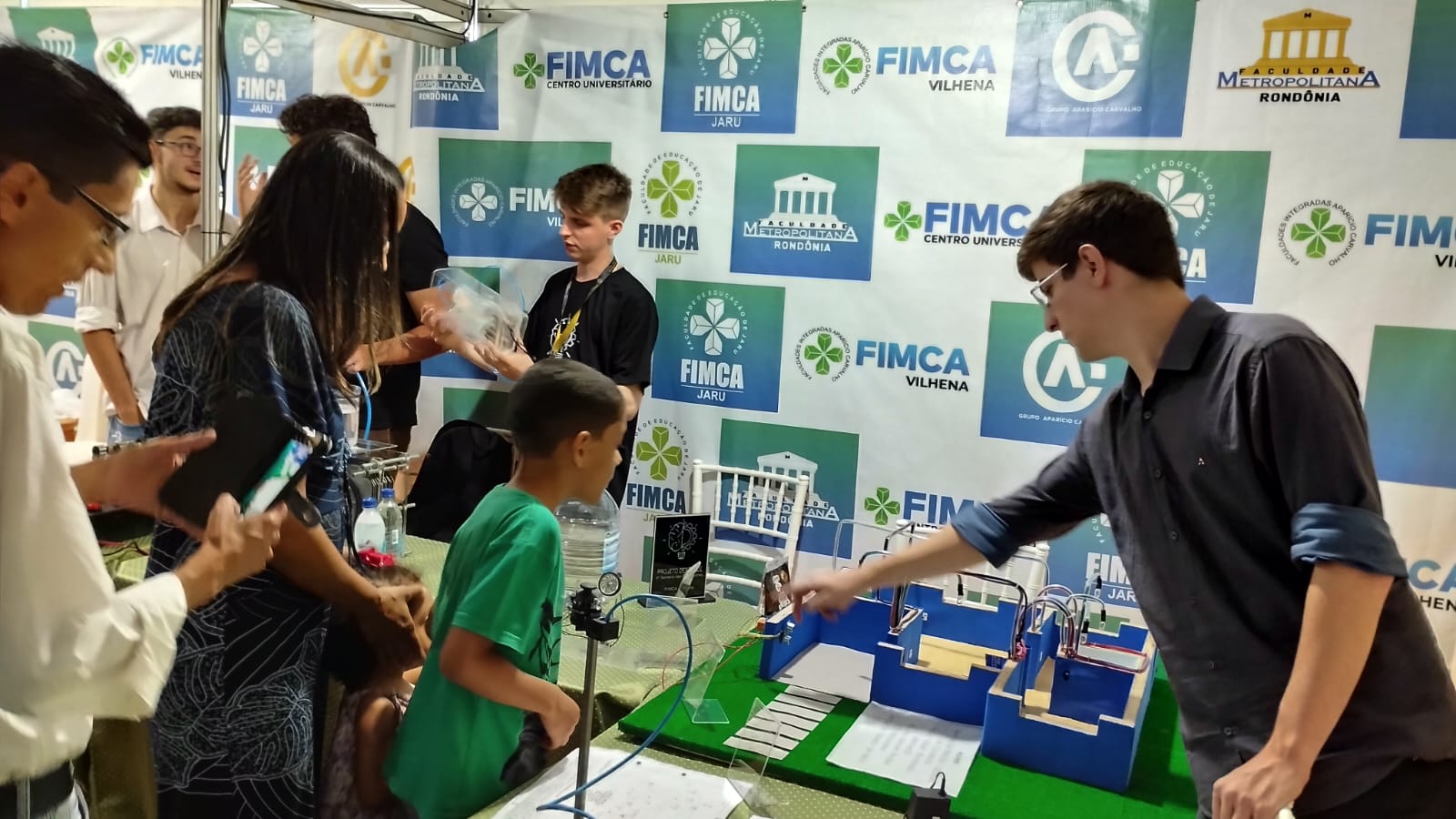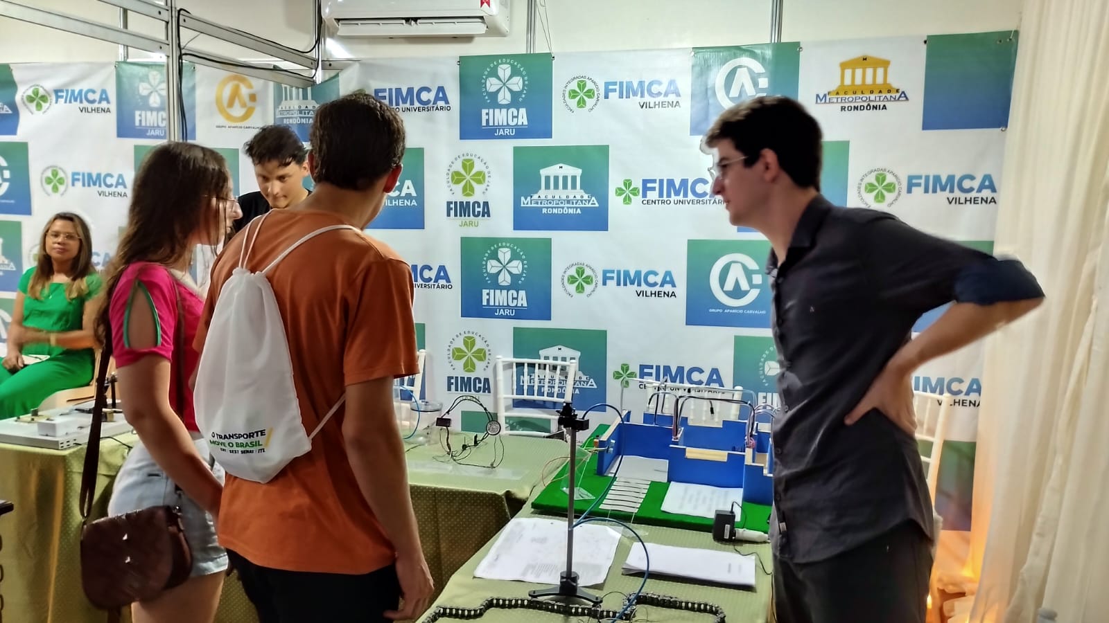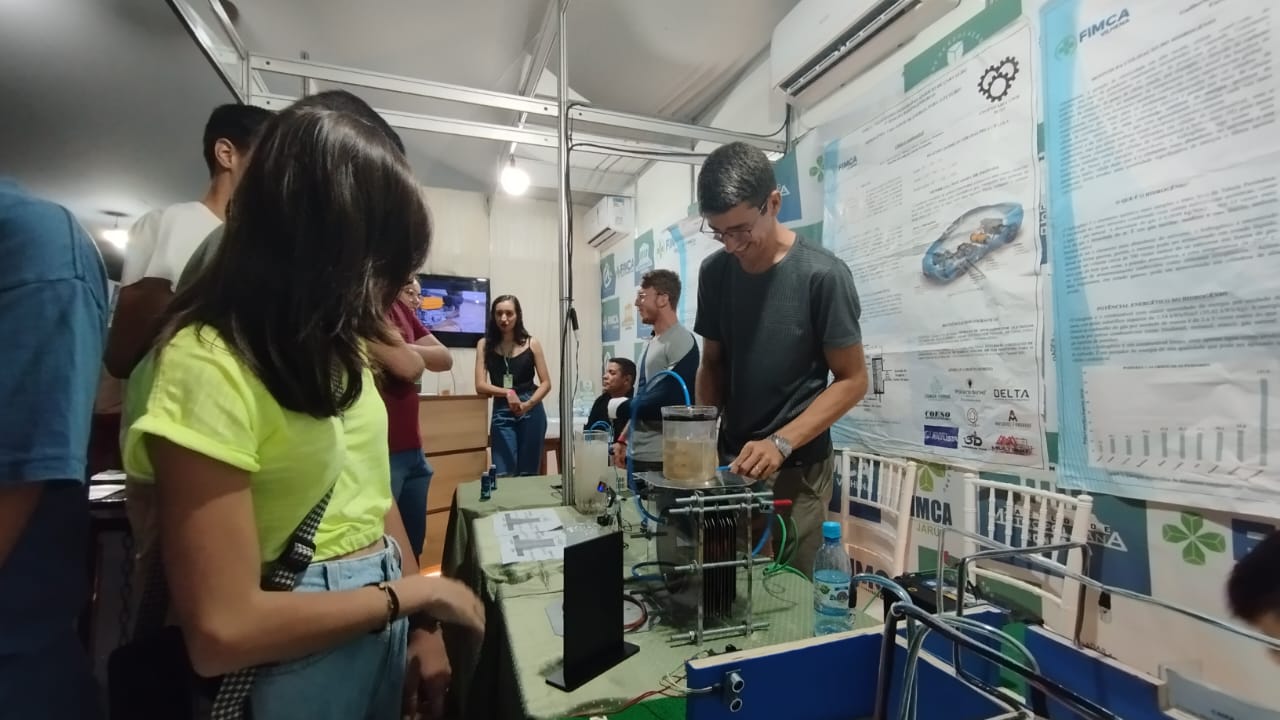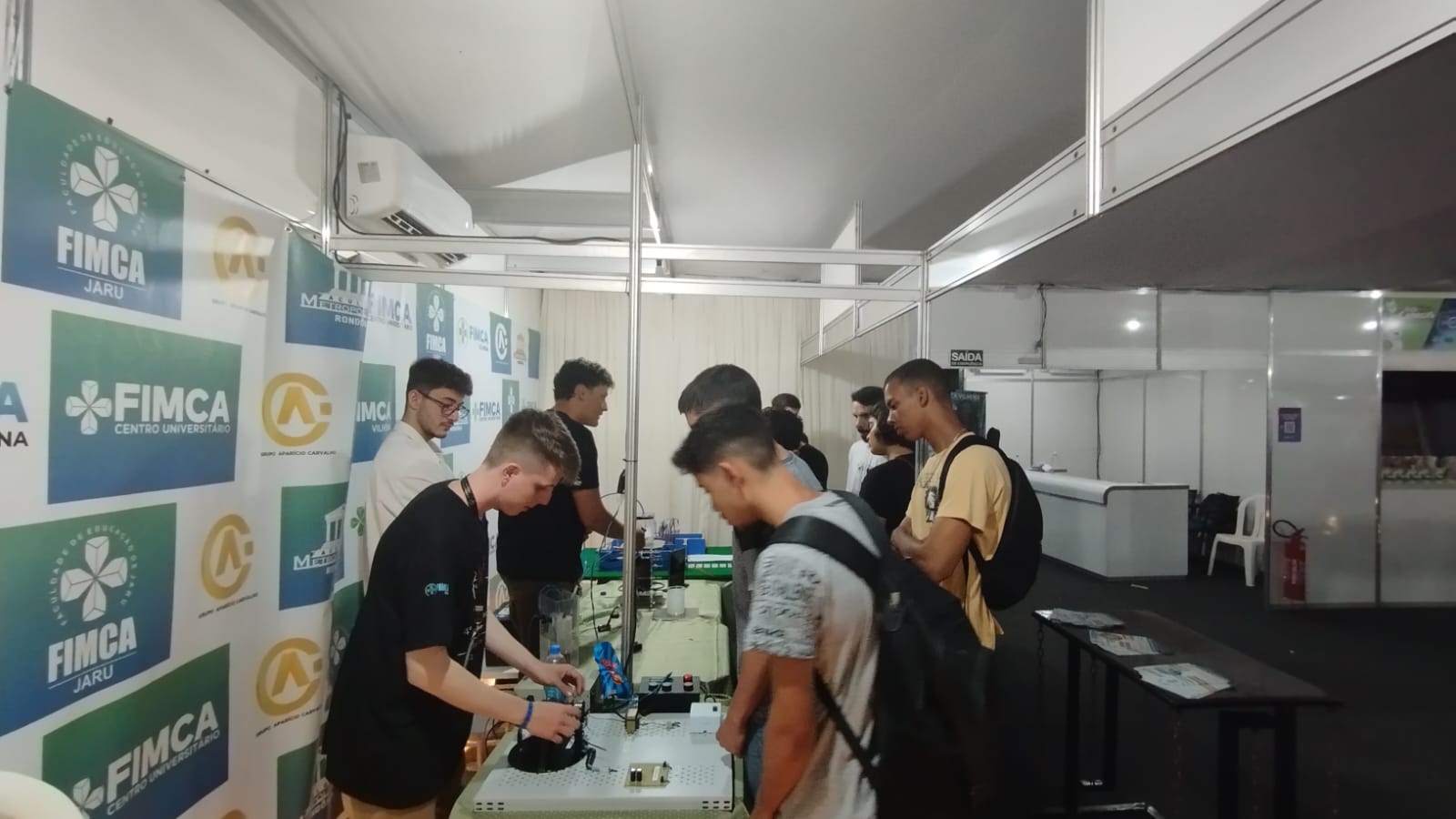 O primeiro stand que se via pelo lado direito ao entrar no evento era o da FIMCA, expondo seus projetos e trabalhos acadêmicos dos cursos de Engenharia, que se destacava pelo encaixe com o tema do evento e pelo alto nível de produção feito pelas mãos dos nossos acadêmicos e professores.