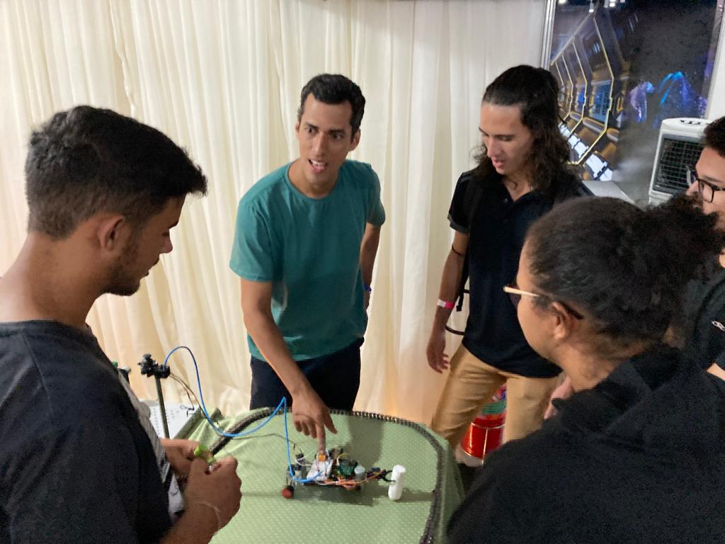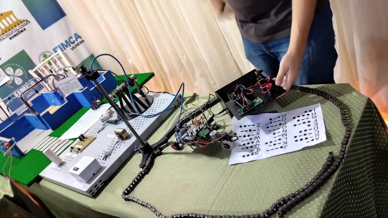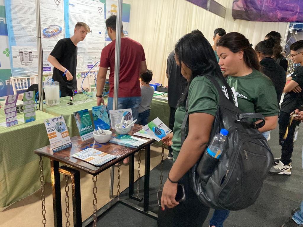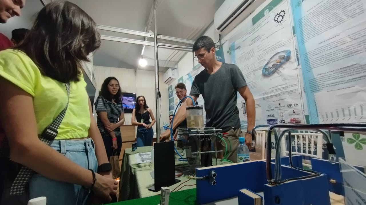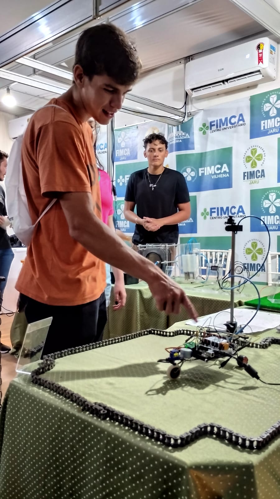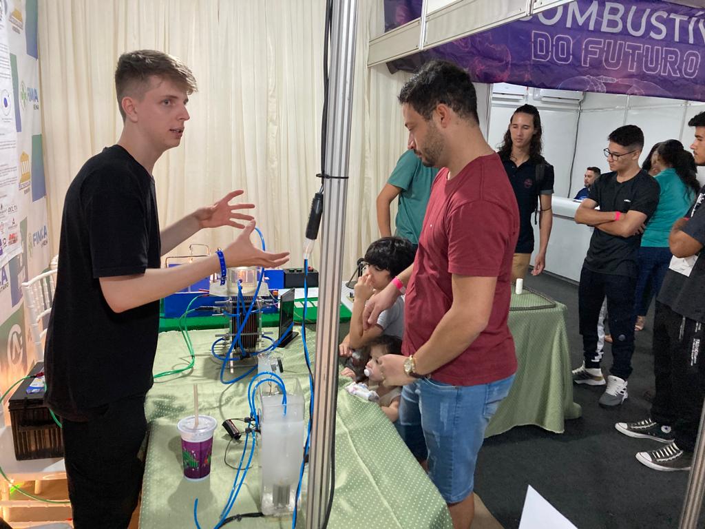 O primeiro stand que se via pelo lado direito ao entrar no evento era o da FIMCA, expondo seus projetos e trabalhos acadêmicos dos cursos de Engenharia, que se destacava pelo encaixe com o tema do evento e pelo alto nível de produção feito pelas mãos dos nossos acadêmicos e professores.
