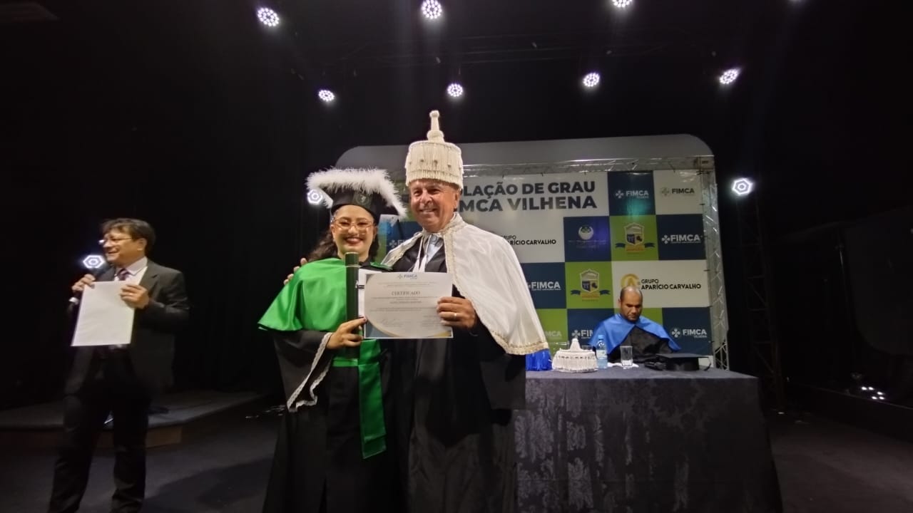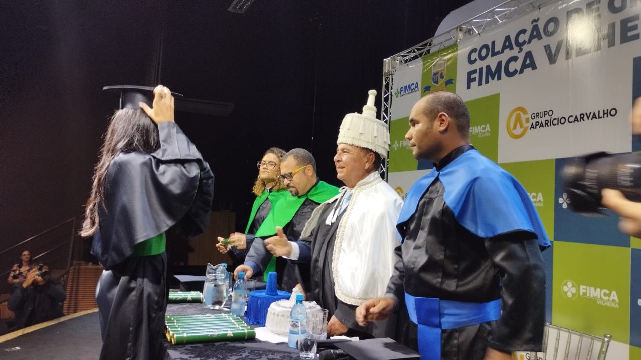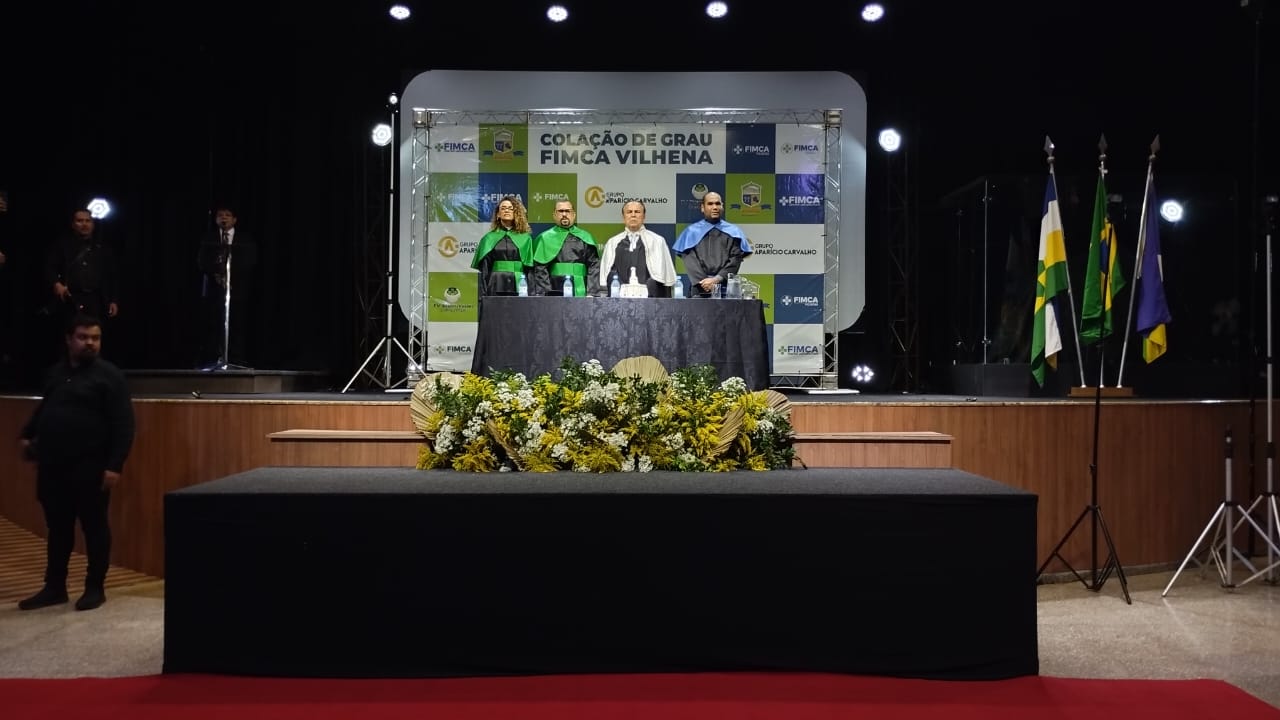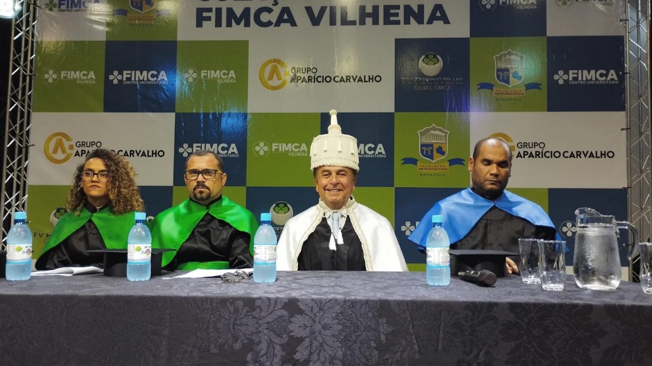 A mesa de Honra foi composta pelo Magnifico Reitor das Faculdades Integradas Aparício Carvalho – FIMCA, Dr. Aparício Carvalho, pelo coordenador da unidade FIMCA Vilhena, Wellington Nascimento Moura, e pelos coordenadores de cursos, Josiane Bruna da Silva Mesquita e Gutemberg Torquato. O Dr. Aparício Carvalho concedeu o grau aos mais novos profissionais, diante de centenas de convidados, numa noite cheia de emoções.