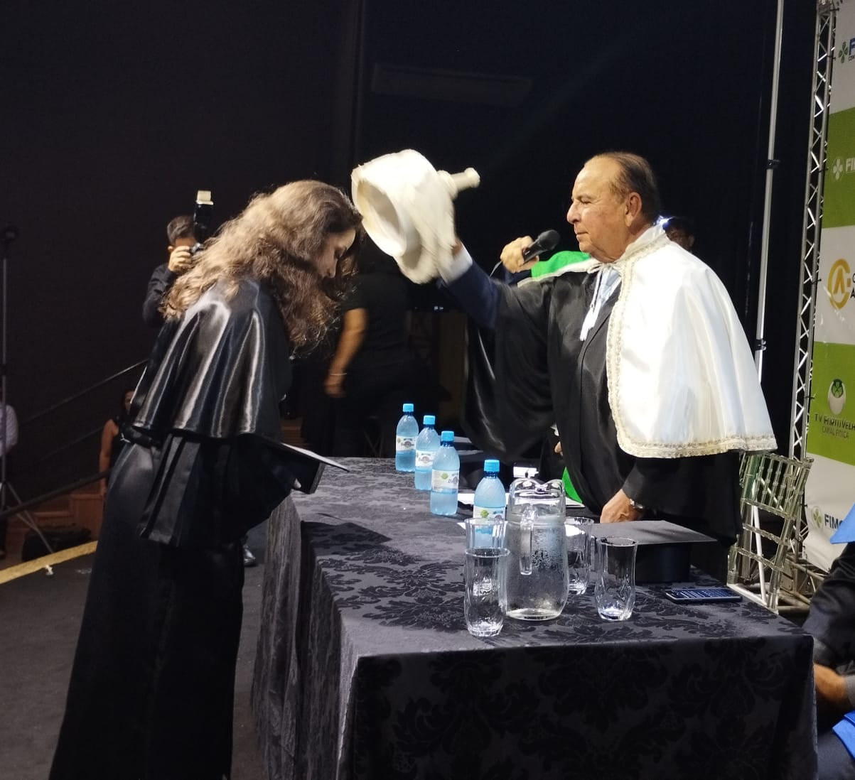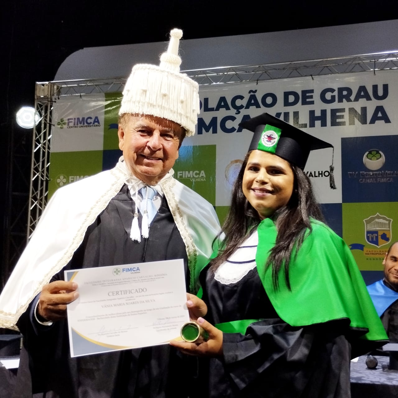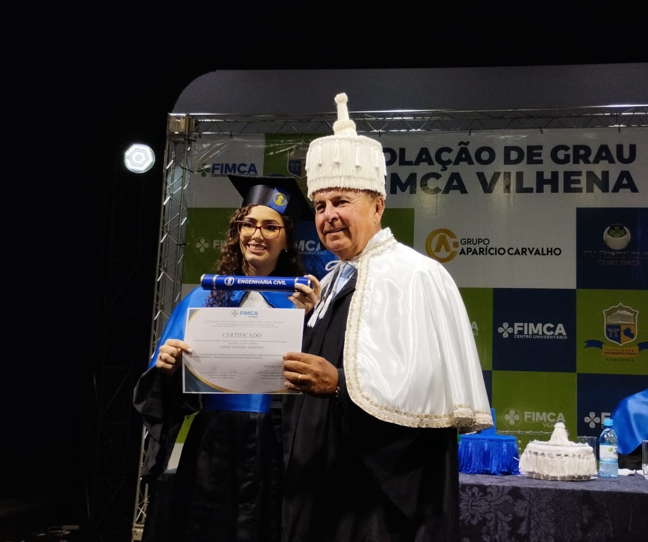 A mesa de Honra foi composta pelo Magnifico Reitor das Faculdades Integradas Aparício Carvalho – FIMCA, Dr. Aparício Carvalho, pelo coordenador da unidade FIMCA Vilhena, Wellington Nascimento Moura, e pelos coordenadores de cursos, Josiane Bruna da Silva Mesquita e Gutemberg Torquato. O Dr. Aparício Carvalho concedeu o grau aos mais novos profissionais, diante de centenas de convidados, numa noite cheia de emoções.