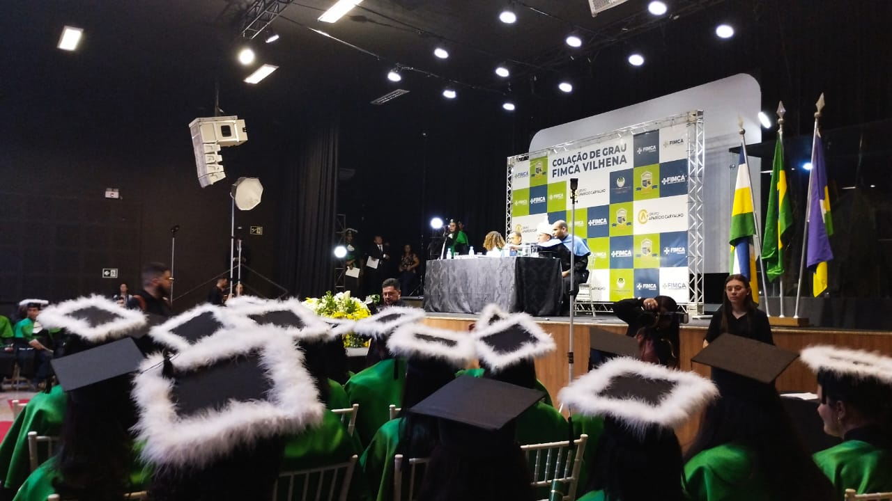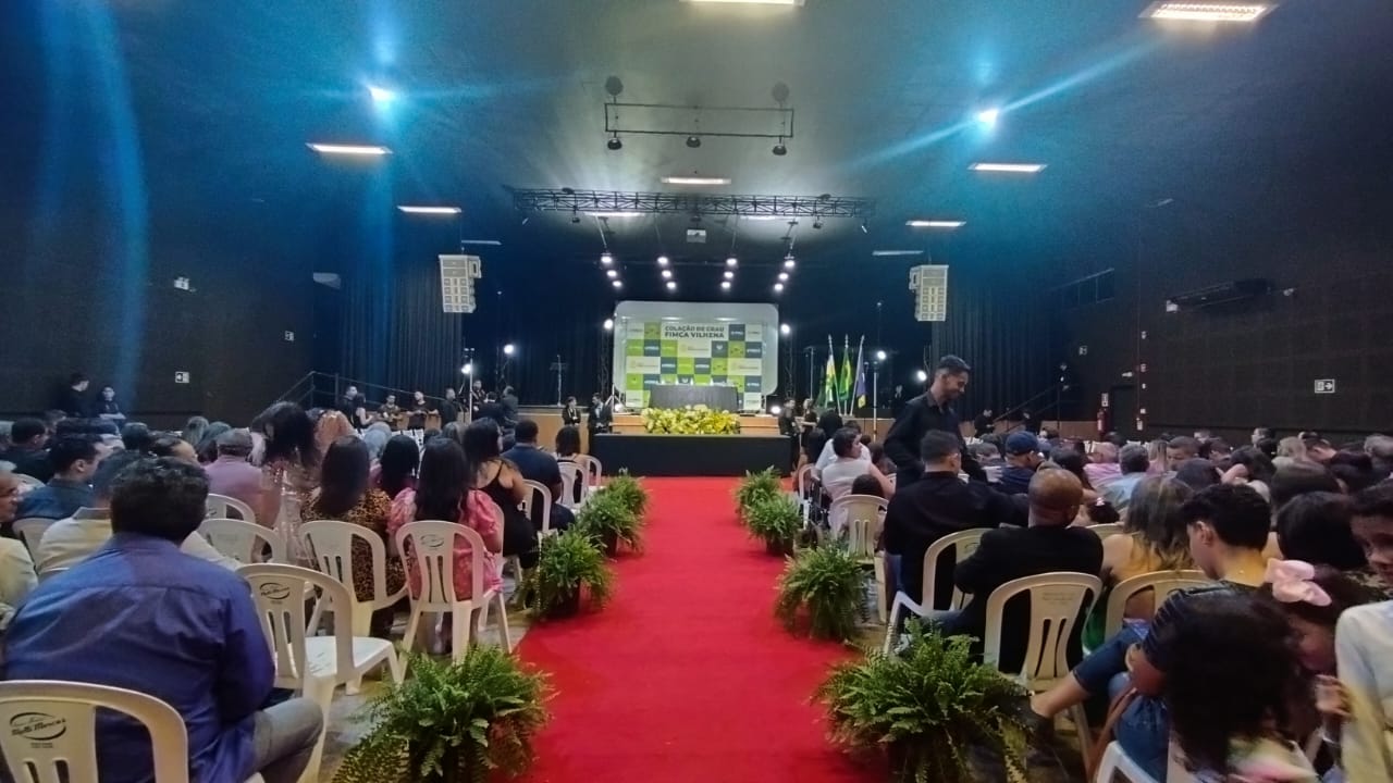 Neste sábado (04), aconteceu a cerimônia de Colação de Grau da FIMCA Vilhena. Os cursos de Enfermagem, Fisioterapia, Educação Física e Engenharia Civil formaram novos profissionais. A solenidade aconteceu no salão da Igreja Batista Nacional Manancial e teve início às 19 horas.