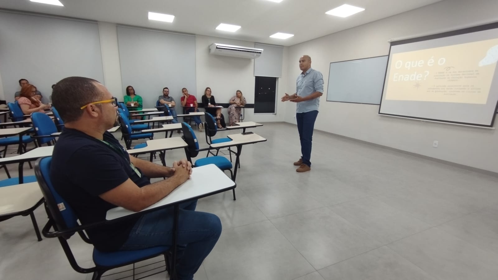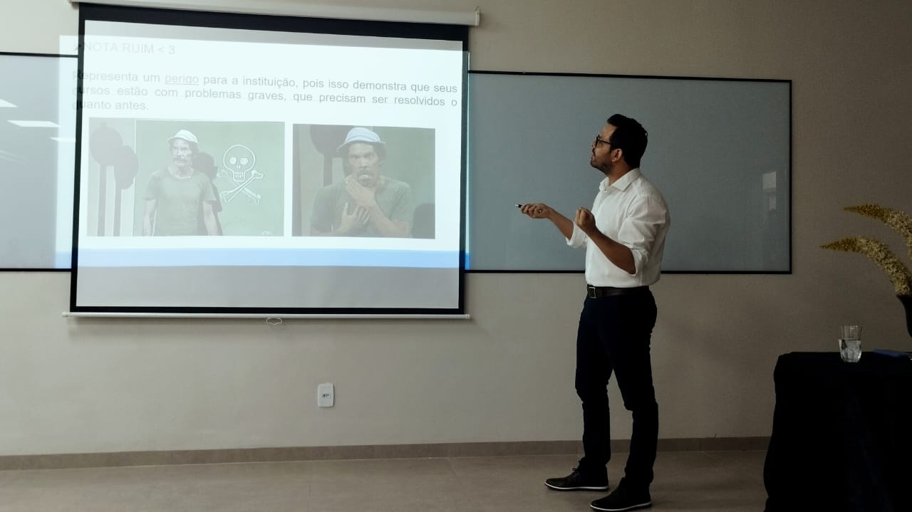 A Semana Pedagógica 2023.1 também deu ênfase ao Exame Nacional de Desempenho dos Estudantes (ENADE). Foram feitas Oficinas de Planejamento Estratégicos para o ENADE com o Prof. Me. Maurício Veiga. Esse ano tivemos a presença da Diretora Acadêmica, Dra. Nelice Batistelli, e do Gestor de Núcleo de Pós-Graduação e Extensão, Denny Vitor Ramos, ambos do grupo Educacional Aparício de Carvalho – FIMCA.
