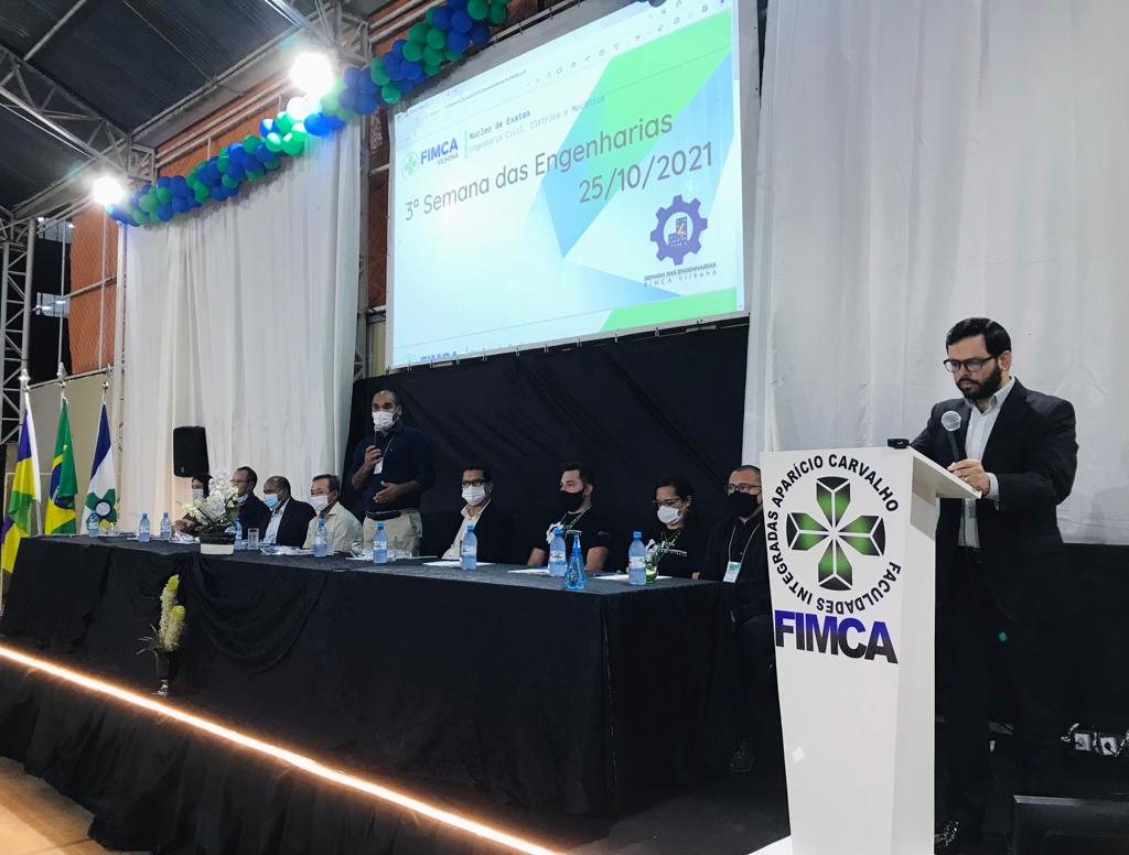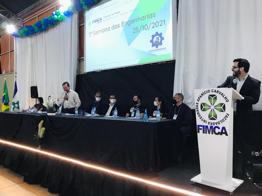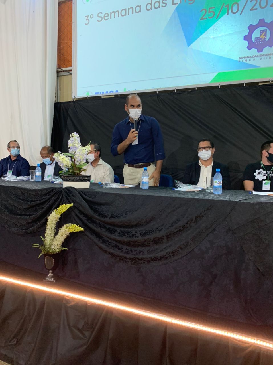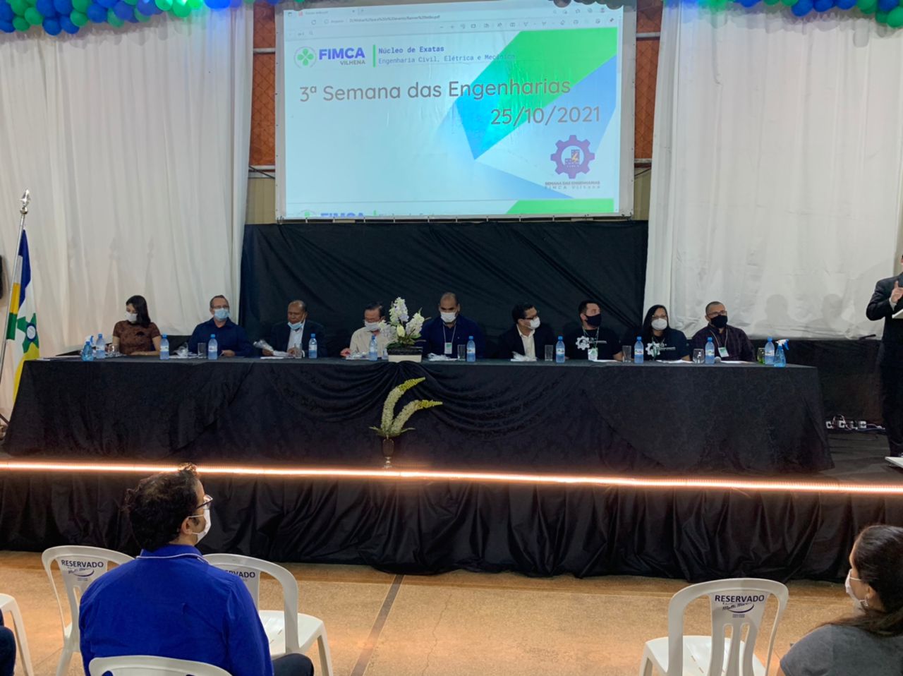 As atividades da III Semana das Engenharias tiveram início nessa segunda-feira (25/10). Na abertura do evento o público prestigiou a apresentação da Banda da FIMCA. Logo após, procedeu-se a cerimônia de abertura que contou com a presença do Coordenador Geral da Unidade Wellignton Nascimento Moura, Coordenador do Núcleo de Exatas Gutemberg Torquato, o Prefeito Eduardo Japonês, superintendente do CREA-RO Neemias Machado, gerente geral do SEBRAE, Charif.