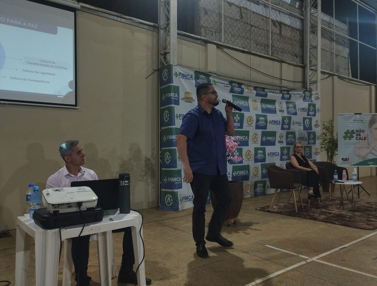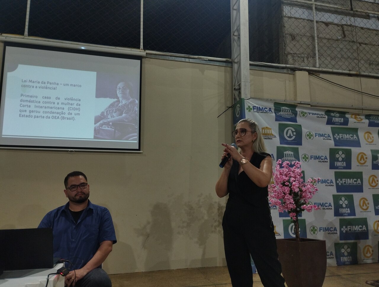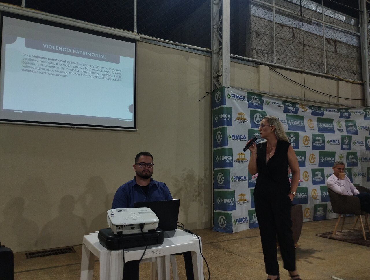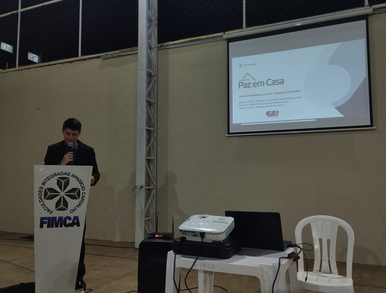 Nesta quarta-feira, às 19:00, a Faculdades Integradas Aparício Carvalho – FIMCA Vilhena recebeu com muito entusiasmo a palestra ministrada pelos profissionais do Tribunal de Justiça do Estado de Rondônia: Roberth Araújo – Analista Judiciário e Psicólogo; Joel de Sá – Analista Judiciário e Assistente Social; e a Analista Judiciário e Assistente Social Adriana Garvim. Trata-se de uma ação em conjunto com o NPJ (Núcleo de Prática Jurídica) da FIMCA – Vilhena e do TJ-RO (Tribunal de Justiça do Estado de Rondônia), que puderam apresentar aos nossos futuros profissionais do Direito e da Psicologia uma