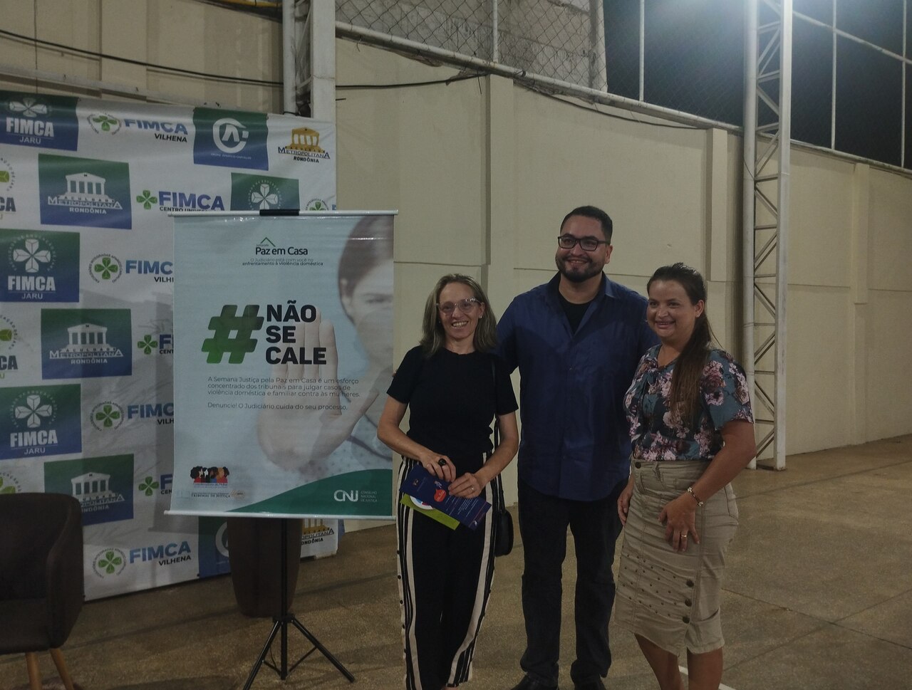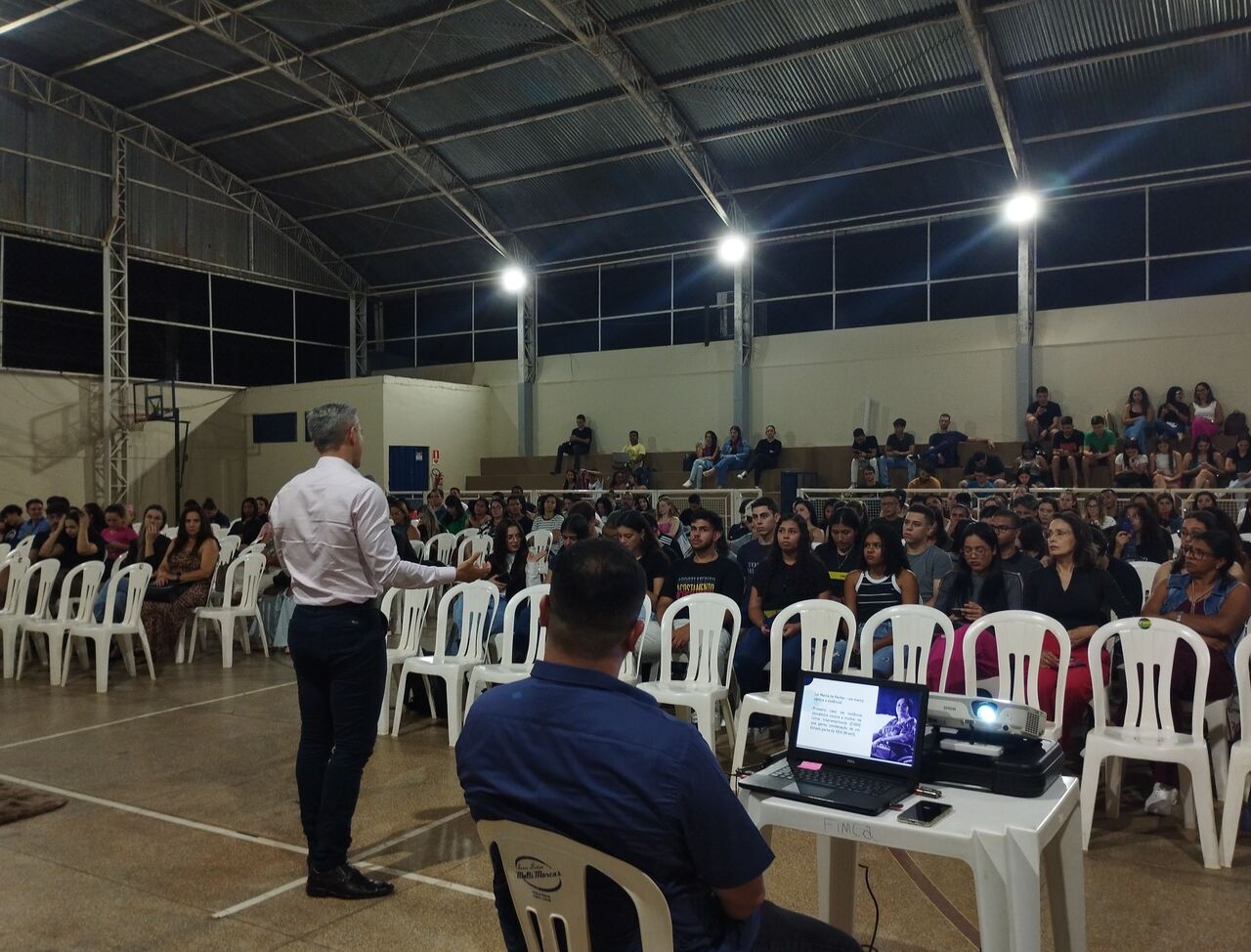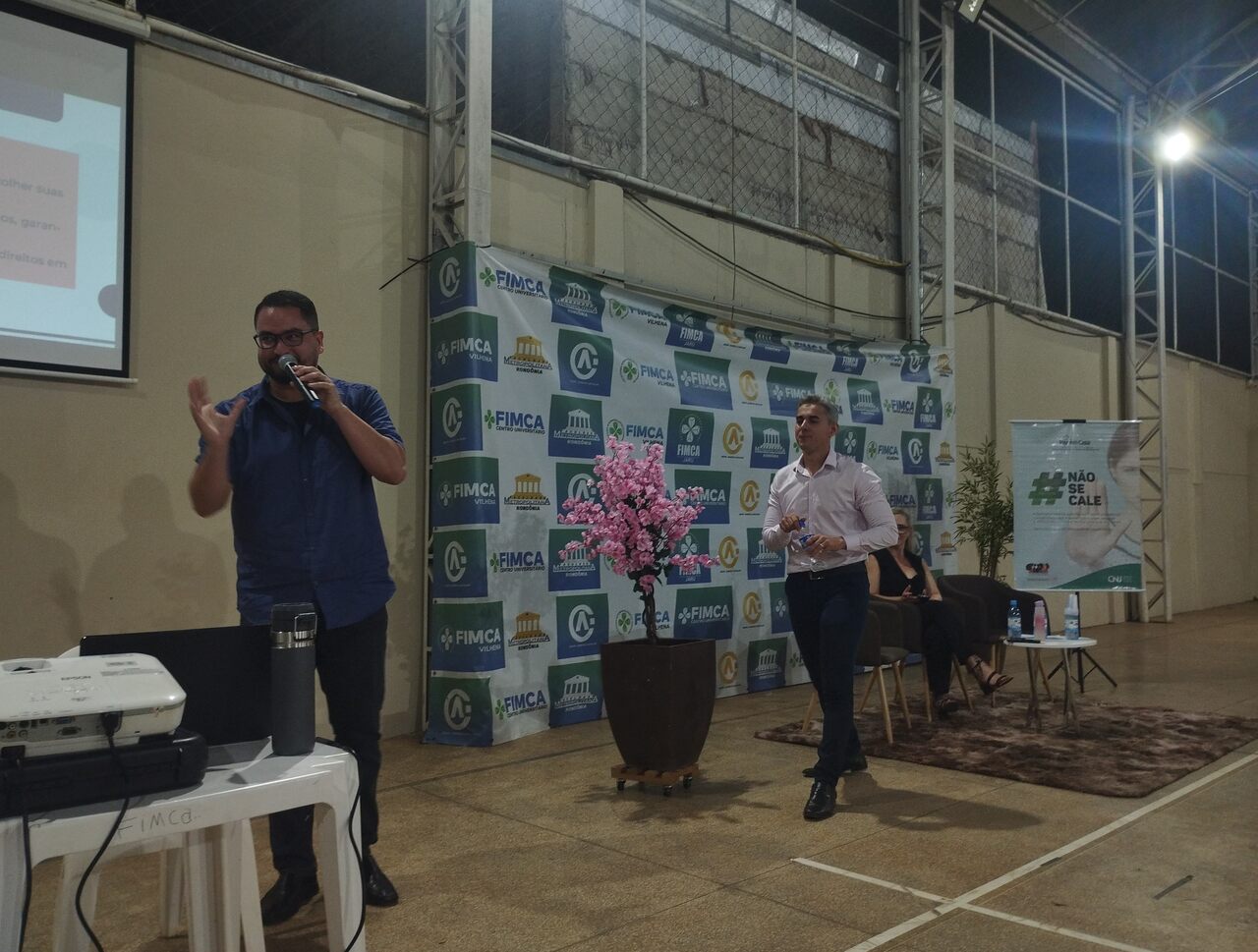 Nesta quarta-feira, às 19:00, a Faculdades Integradas Aparício Carvalho – FIMCA Vilhena recebeu com muito entusiasmo a palestra ministrada pelos profissionais do Tribunal de Justiça do Estado de Rondônia: Roberth Araújo – Analista Judiciário e Psicólogo; Joel de Sá – Analista Judiciário e Assistente Social; e a Analista Judiciário e Assistente Social Adriana Garvim. Trata-se de uma ação em conjunto com o NPJ (Núcleo de Prática Jurídica) da FIMCA – Vilhena e do TJ-RO (Tribunal de Justiça do Estado de Rondônia), que puderam apresentar aos nossos futuros profissionais do Direito e da Psicologia uma