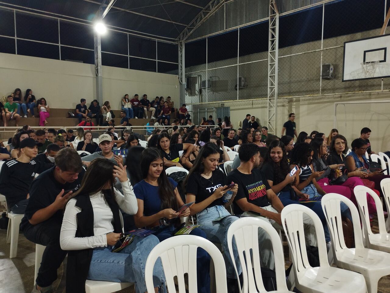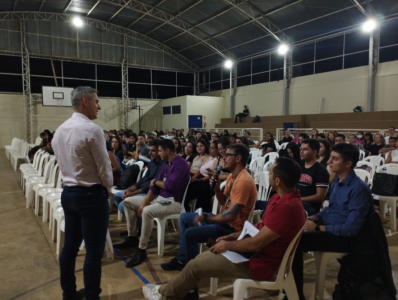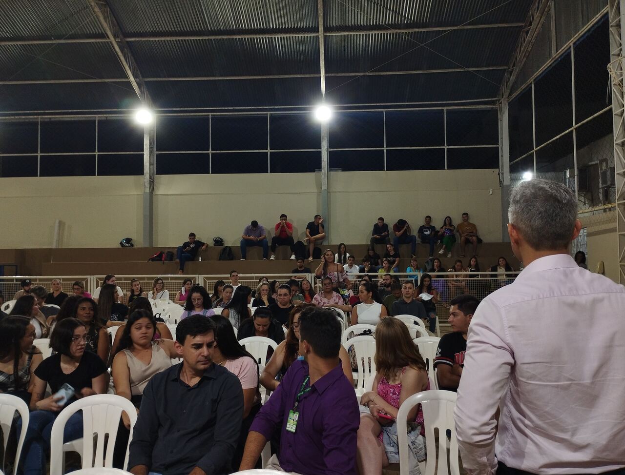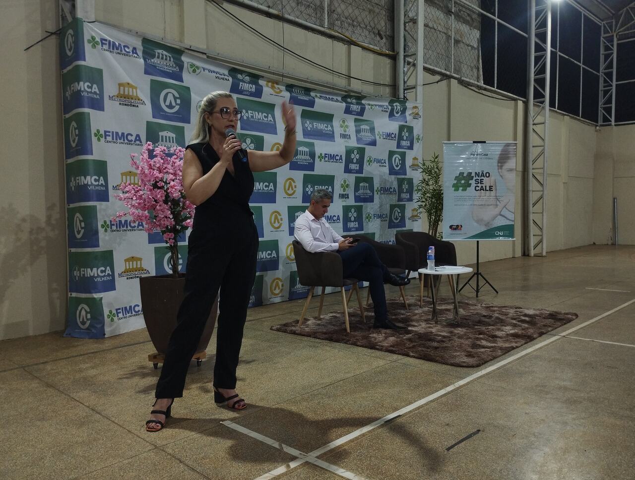 Nesta quarta-feira, às 19:00, a Faculdades Integradas Aparício Carvalho – FIMCA Vilhena recebeu com muito entusiasmo a palestra ministrada pelos profissionais do Tribunal de Justiça do Estado de Rondônia: Roberth Araújo – Analista Judiciário e Psicólogo; Joel de Sá – Analista Judiciário e Assistente Social; e a Analista Judiciário e Assistente Social Adriana Garvim. Trata-se de uma ação em conjunto com o NPJ (Núcleo de Prática Jurídica) da FIMCA – Vilhena e do TJ-RO (Tribunal de Justiça do Estado de Rondônia), que puderam apresentar aos nossos futuros profissionais do Direito e da Psicologia uma