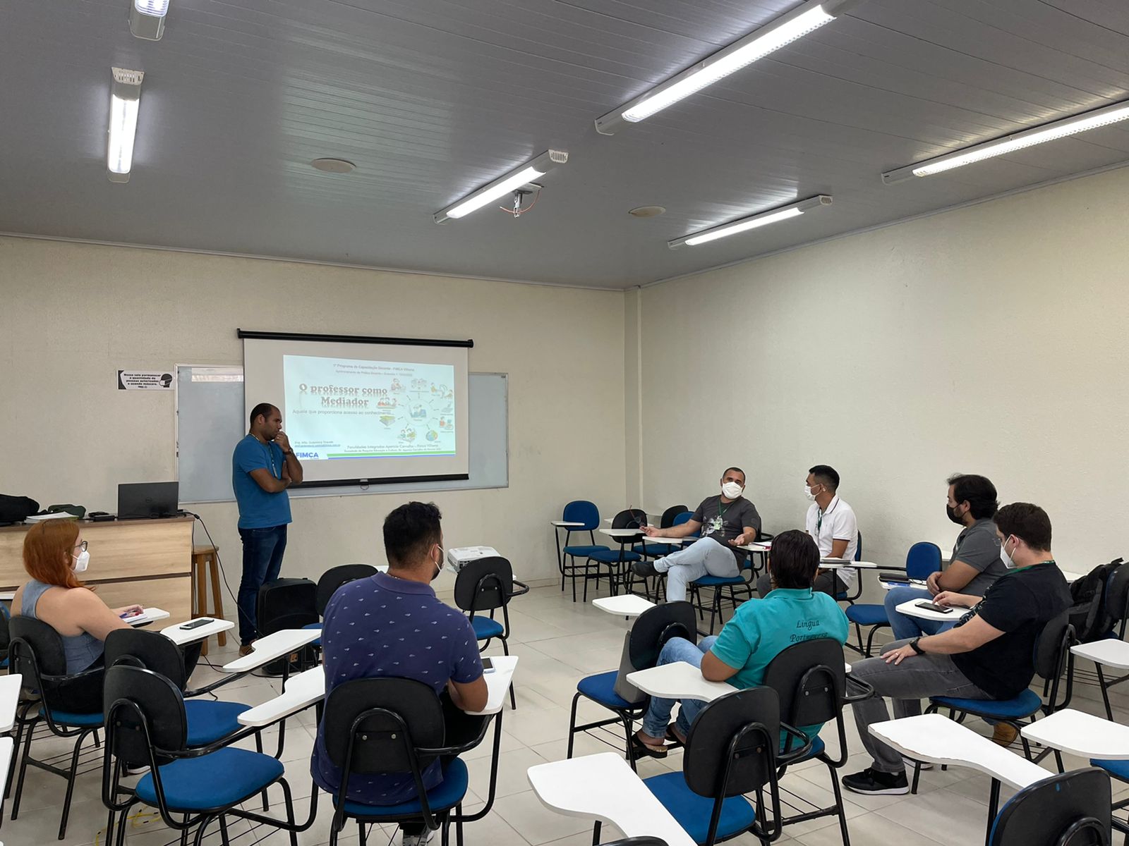 Programa de Capacitação Docente da FIMCA Vilhena: Aprimoramento da Prática Docente. Não é possível ensinar aquilo que não se sabe, assim, é preciso aprender para depois ensinar. Mas que isso, é necessário aprender como ensinar. Em 12/03/2022, iniciou-se o programa de capacitação docente para formação continuada do semestre letivo 2022/1. O 1º encontro teve por tema “O professor como Mediador” e versou conteúdos como Aprendizagem Significativa, Metodologias Ativas, Interdisciplinaridade, Multidisciplinaridade, Transdisciplinaridade, Estratégias de Aprendizagem. Por meio de uma mesa redonda, o debote fundamentou nas teorias de grandes estudiosos da prática pedagógica, como: Vygotsky, Piaget, Ausubel, Perrenoud, Feuerstein, Moran.