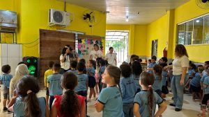 Nesta sexta-feira, 03 de outubro, os acadêmicos do curso de Psicologia da FIMCA Vilhena realizaram uma atividade de extensão na Escola Municipal Nina Paul, por meio do projeto “Sorrisos e Brinquedos: Doação como Solidariedade”. A iniciativa teve como objetivo proporcionar momentos de alegria, interação e desenvolvimento às crianças, fortalecendo o compromisso social da instituição.