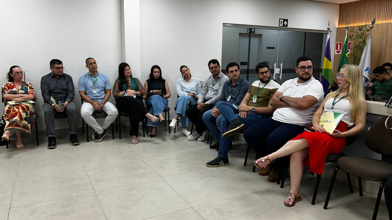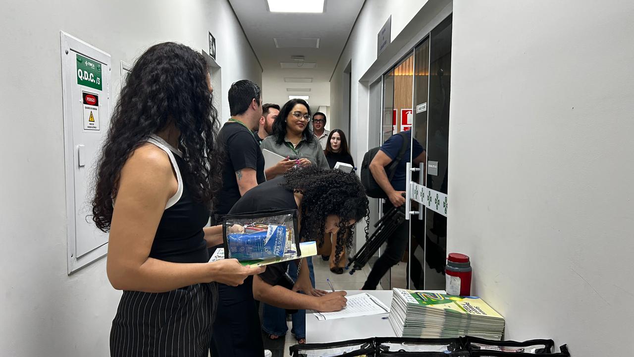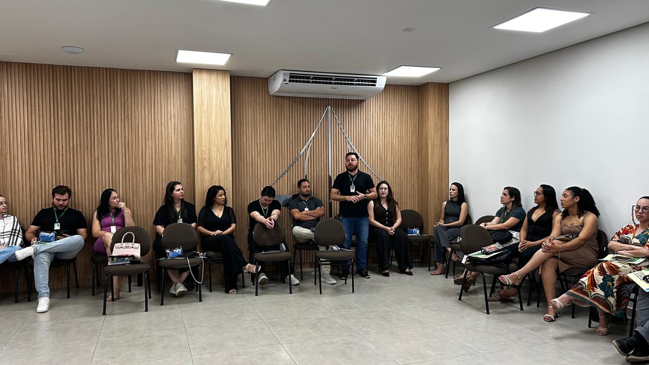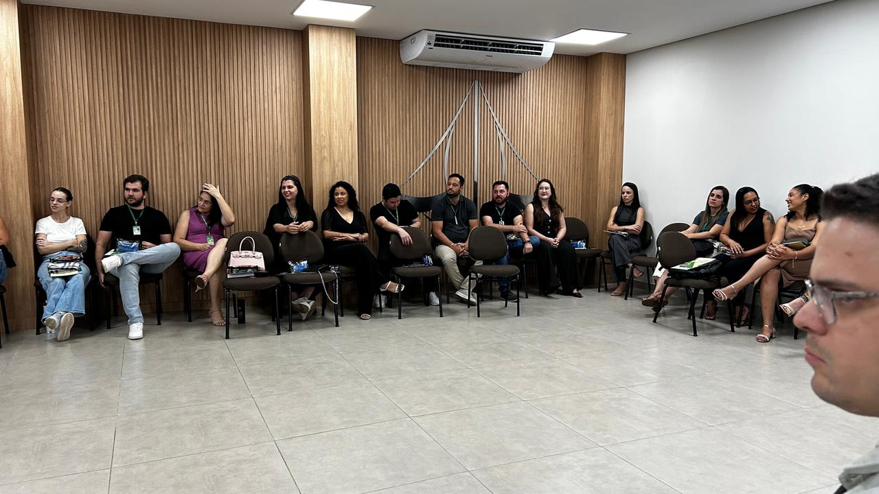 Durante o primeiro momento, os participantes foram apresentados aos integrantes do corpo técnico-administrativo, às coordenações de curso e à gestora dos laboratórios. Esse momento teve como objetivo não apenas dar as boas-vindas aos presentes, mas também reforçar as normas institucionais e o funcionamento dos setores, fortalecendo o alinhamento entre as equipes.