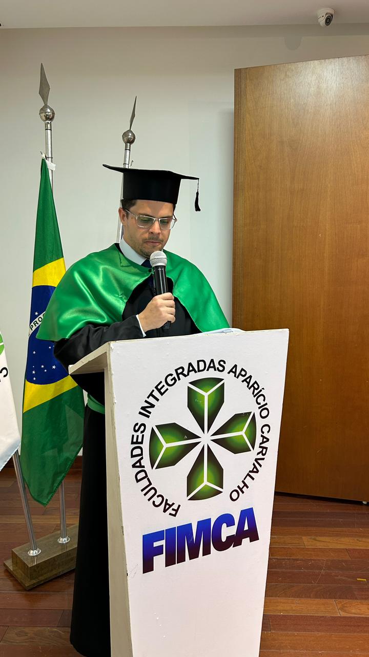 A solenidade foi presidida pelo Dr. Mário Vitor Venâncio Machado, coordenador da Unidade FIMCA Vilhena, que conduziu o ato solene destacando o compromisso institucional com a excelência no ensino superior. Durante sua fala, o gestor enfatizou a dedicação dos acadêmicos ao longo da graduação e parabenizou os familiares, reconhecendo o apoio, o incentivo e a presença constante que foram fundamentais para a conclusão dessa etapa.